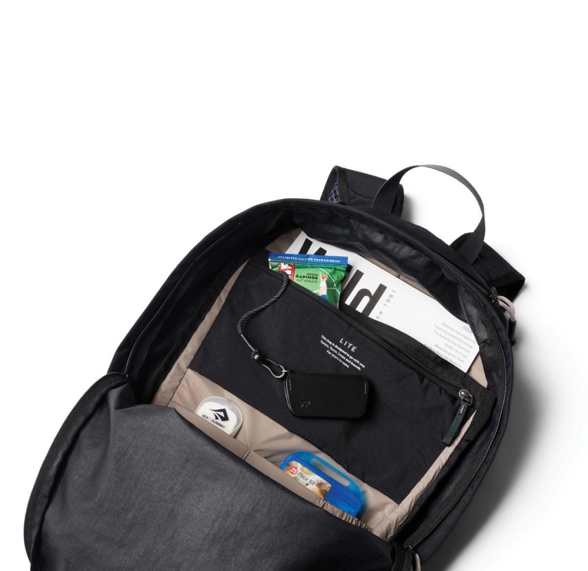 This super lightweight backpack balances performance with comfort, so you can move like the wind wherever adventure takes you. Durable ripstop is 3x lighter than our other fabric, and made from 100% recycled PET. Can be folded or rolled, and packed for travel. Internal document sleeve. Elevated essentials pocket with key clip. Padded, breathable mesh back panels and shoulder straps. Adjustable and detachable sternum strap. Integrated bike light loop.