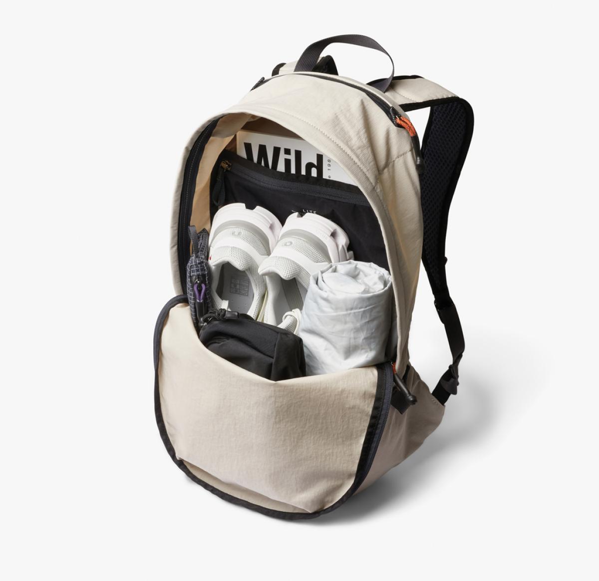 This super lightweight backpack balances performance with comfort, so you can move like the wind wherever adventure takes you. Durable ripstop is 3x lighter than our other fabric, and made from 100% recycled PET. Can be folded or rolled, and packed for travel. Internal document sleeve. Elevated essentials pocket with key clip. Padded, breathable mesh back panels and shoulder straps. Adjustable and detachable sternum strap. Integrated bike light loop.