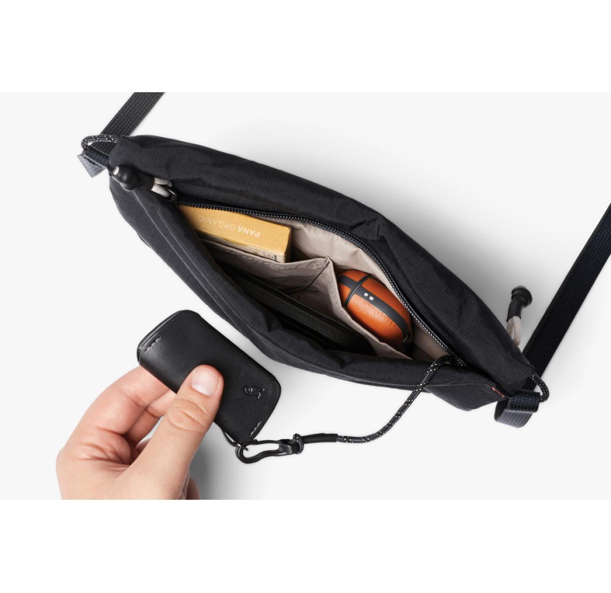 The ultimate in slim carry, this minimalist lightweight crossbody keeps your pockets free around town, or while travelling. Durable ripstop is 3x lighter than our other fabric. Can be folded or rolled, and packed for travel. Expandable storage. Front zip compartment with built-in key clip. Surprisingly spacious main compartment. Two slip pockets for small items. Lightweight adjustable strap.