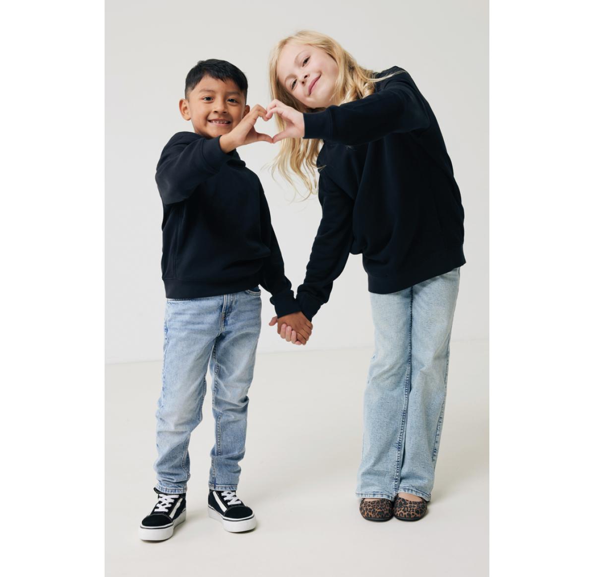 Kids modern fit hoodie made from 100% cotton, of which 70% is organic and 30% recycled, 280 G/M². The sweater has pockets in the sideseams, a double-layered hood and 1x1 rib at cuffs and bottom hem. The inside is soft-brushed fleece for extra comfort. The use of genuine recycled & organic fabric materials and environmental impact claims are guaranteed, by using the AWARE™ disruptive physical tracer and blockchain technology. By scanning the QR code, you will gain access to a dedicated digital passport of the product. 2% of proceeds of each sold product will be donated to Water.org. This product is OEKO-TEX® STANDARD 100 2303045 Centexbel certified. Due to the nature of recycled yarns, impurities and colour variations may appear.