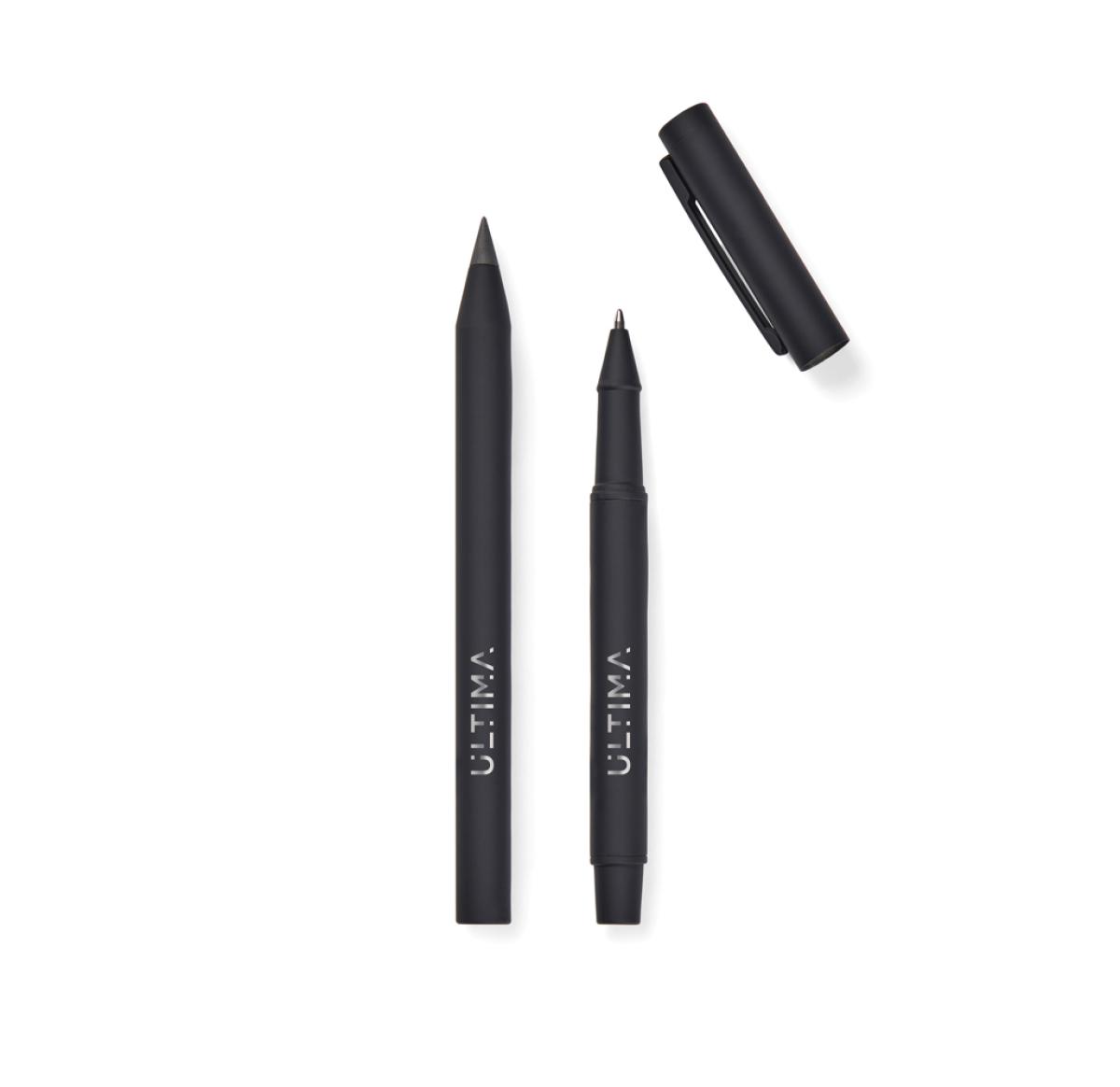 This modern and sleek set includes two pens: an eternal pen and a classic ballpoint pen with a cap and clip. Designed for both style and functionality, these pens are crafted from RCS certified recycled stainless steel, featuring a rubber surface coating for a comfortable grip and a matt finish. Both pens have a balanced weight that ensures stability and effortless writing. The eternal pen offers limitless writing. The ballpoint pen features a fine 1.00 mm tip and provides smooth, consistent writing with documental blue ink, lasting up to 1200 metres. Certified by RCS (Recycled Claim Standard), RCS certification guarantees that the entire supply chain of recycled materials is certified. The total recycled content is based on the overall product weight. This product contains 52% RCS certified recycled aluminum and 10% RCS certified stainless steel.