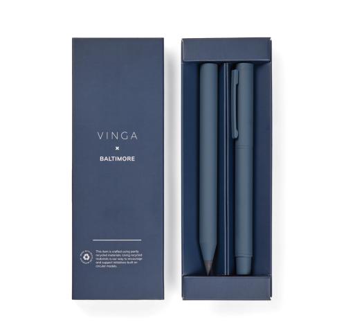 This modern and sleek set includes two pens: an eternal pen and a classic ballpoint pen with a cap and clip. Designed for both style and functionality, these pens are crafted from RCS certified recycled stainless steel, featuring a rubber surface coating for a comfortable grip and a matt finish. Both pens have a balanced weight that ensures stability and effortless writing. The eternal pen offers limitless writing. The ballpoint pen features a fine 1.00 mm tip and provides smooth, consistent writing with documental blue ink, lasting up to 1200 metres. Certified by RCS (Recycled Claim Standard), RCS certification guarantees that the entire supply chain of recycled materials is certified. The total recycled content is based on the overall product weight. This product contains 52% RCS certified recycled aluminum and 10% RCS certified stainless steel.