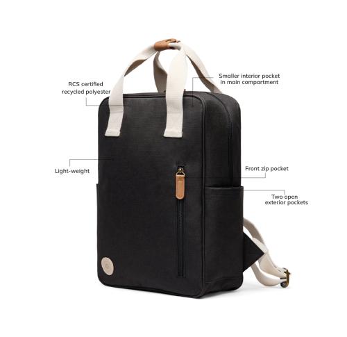 Keep it light with this classic yet subtly sporty backpack, crafted from RCS certified recycled polyester and accented with contrasting details. The backpack offers a convenient front zip pocket and two open side pockets for easy access. Inside the spacious main compartment is a smaller pocket, designed for easy organisation. The antique brass metal details add a touch of sophistication. Certified by RCS (Recycled Claim Standard), RCS certification guarantees that the entire supply chain of recycled materials is certified. The total recycled content is based on the overall product weight. This product contains 10% RCS certified recycled polyester.