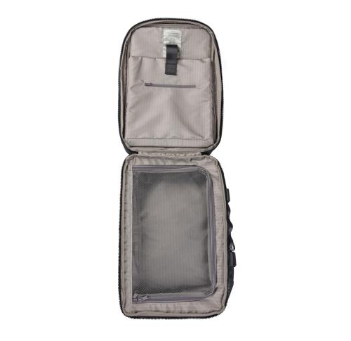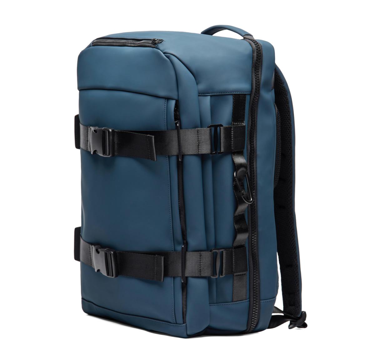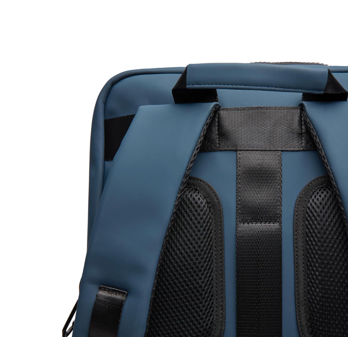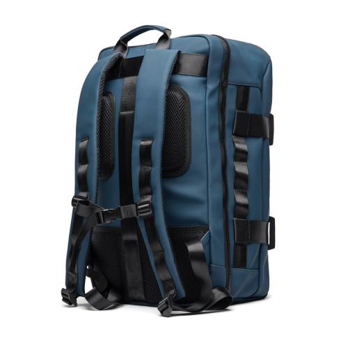 The ultimate companion for your adventures. Crafted with partly RCS certified recycled polyester. The exterior features a sleek PU finish, with mesh backing on the shoulder straps and back for maximum comfort. Designed for convenience, the bag can be fully opened for easy access. With multiple smart features, it offers a laptop compartment, two exterior pockets and a roomy mesh section inside to keep your gear organised. A sturdy top handle and a carabiner to secure smaller items. The clever strap at the back allows easy attachment to a trolley bag. A side zipper offers convenient access to the main mesh compartment. This is the ideal backpack for both daily commutes and weekend adventures. Certified by RCS (Recycled Claim Standard), RCS certification guarantees that the entire supply chain of recycled materials is certified. The total recycled content is based on the overall product weight. This product contains 16% RCS certified recycled polyester.