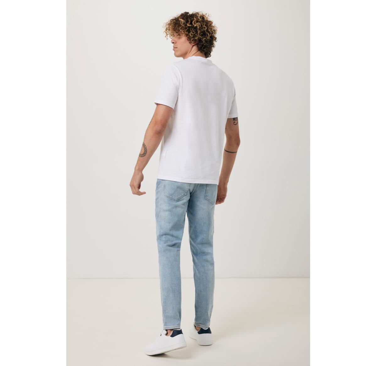 Unisex classic fit t-shirt made from 100% cotton, of which 30% recycled and 70% organic, in 180 G/M². The t-shirt has a crew neck, short sleeves and 1x1 rib. The use of genuine recycled & organic fabric materials and environmental impact claims are guaranteed, by using the AWARE™ disruptive physical tracer and blockchain technology. By scanning the QR code, you will gain access to a dedicated digital passport of the product. 2% of proceeds of each sold product will be donated to Water.org. This product is OEKO-TEX® STANDARD 100 2303045 Centexbel certified. Due to the nature of recycled yarns, impurities and colour variations may appear.