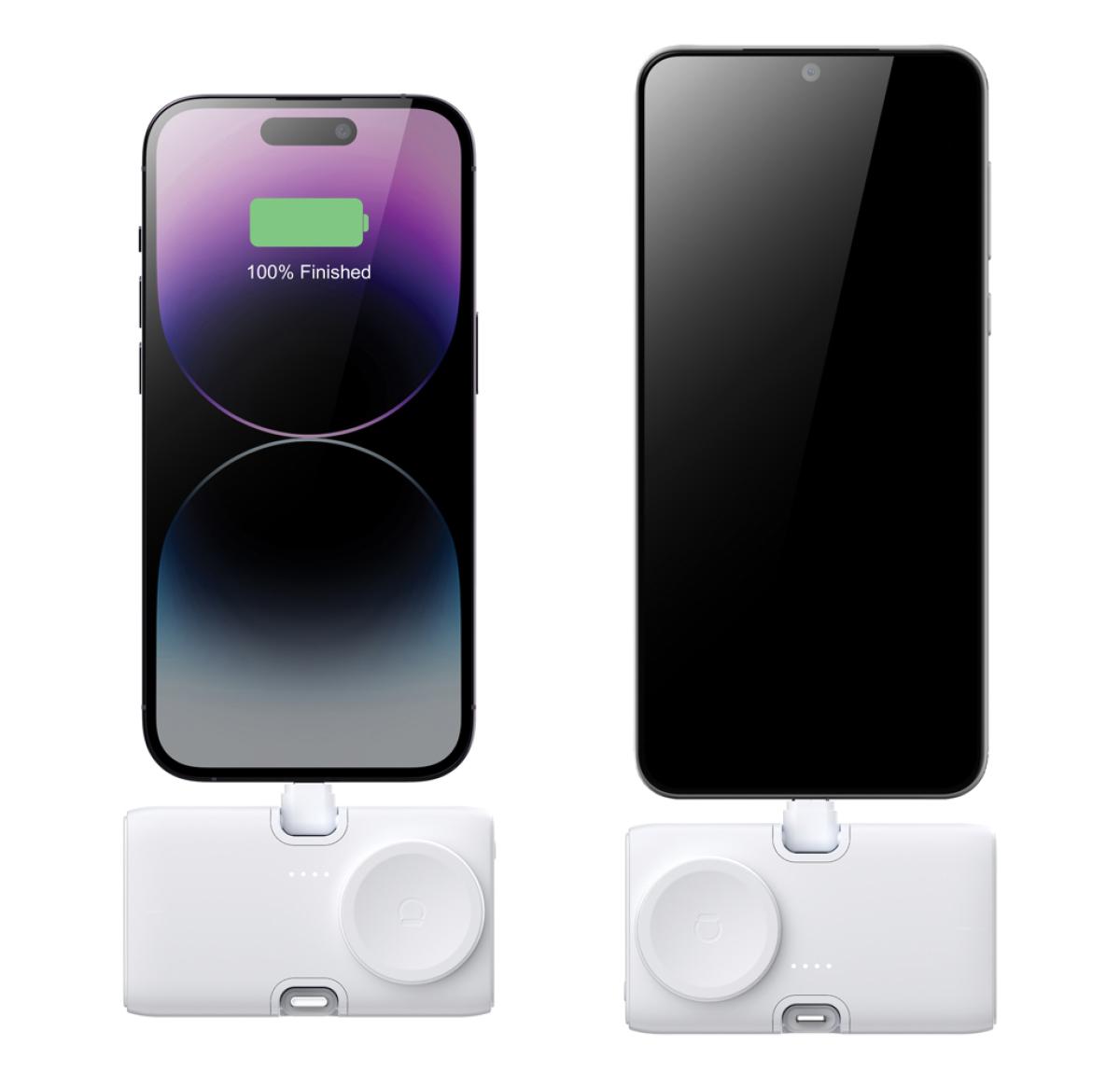 Carry 20W portable power in your pocket and be ready to fast charge on the go wherever you are! Urban Vitamin San Diego is a lightweight but powerful 5000mAh power bank. With dual fast charging options to re-charge via the integrated iOS connector (for iPhone 14 and older) and state-of-the-art Type-C output, you can charge your phone without the need to bring any cables! You can even charge two items at the same time. All outputs offer ultra-fast 20W charging to re-charge up to 50% in less than 30 minutes. Beside two integrated connector the item also has a USB C input port to fast re-charge the powerbank. It comes with an integrated watch charger to charge all recent Apple watch models. It also features an integrated stand to charge your phone while watching movies or listening to music. Made with RCS recycled ABS and recycled PC, the total recycled content is 24% based on total item weight. PVC free and plastic packed in plastic reduced box.