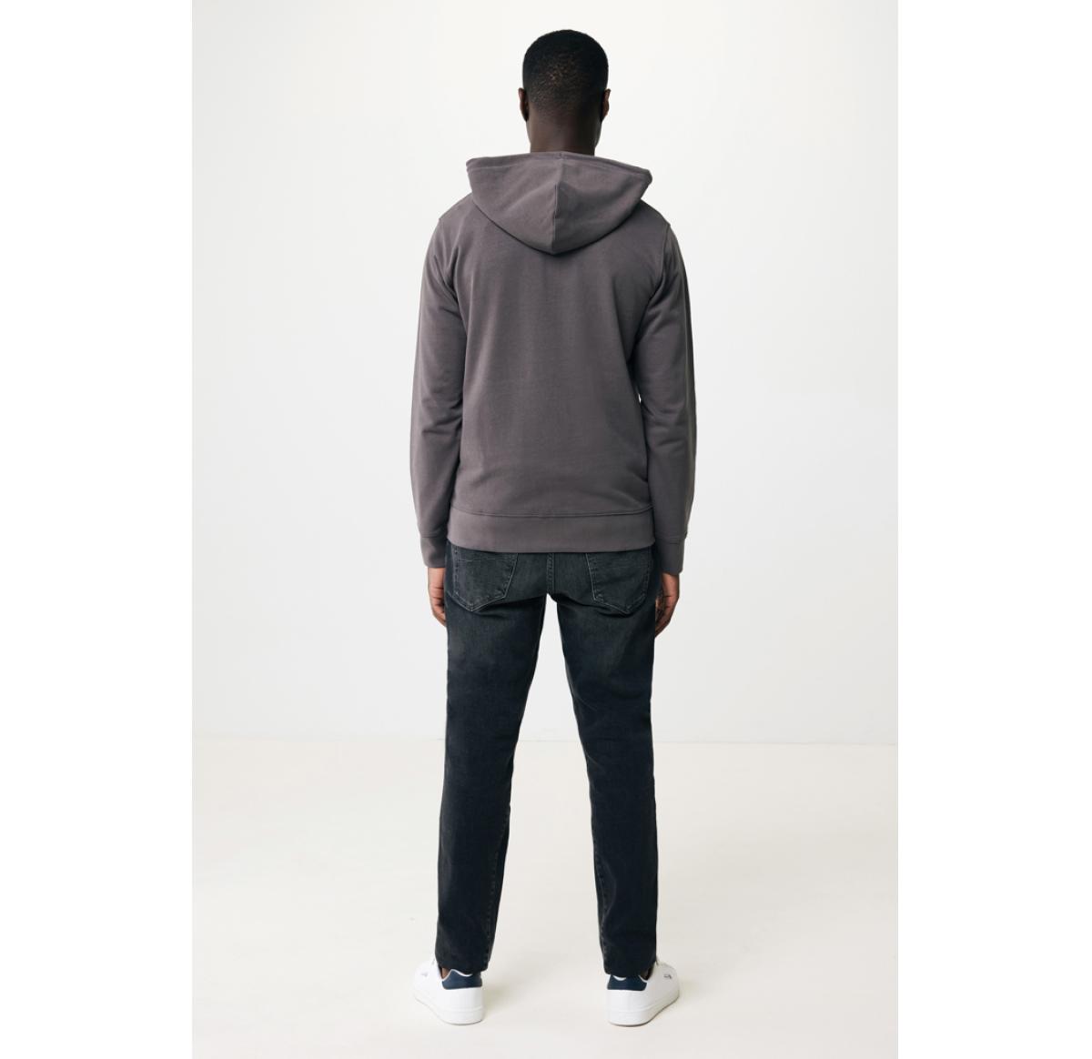 Unisex modern fit zip through hoodie made from 100% cotton, of which 50% is recycled and 50% organic, in 340 G/M². The zip through hoodie has a double-layered hood, long sleeves and 1x1 rib. The inside is soft-brushed fleece for extra comfort. The use of genuine recycled & organic fabric materials and environmental impact claims are guaranteed, by using the AWARE™ disruptive physical tracer and blockchain technology. By scanning the QR code, you will gain access to a dedicated digital passport of the product. 2% of proceeds of each sold product will be donated to Water.org. This product is OEKO-TEX® STANDARD 100 2303045 Centexbel certified. Due to the nature of recycled yarns, impurities and colour variations may appear