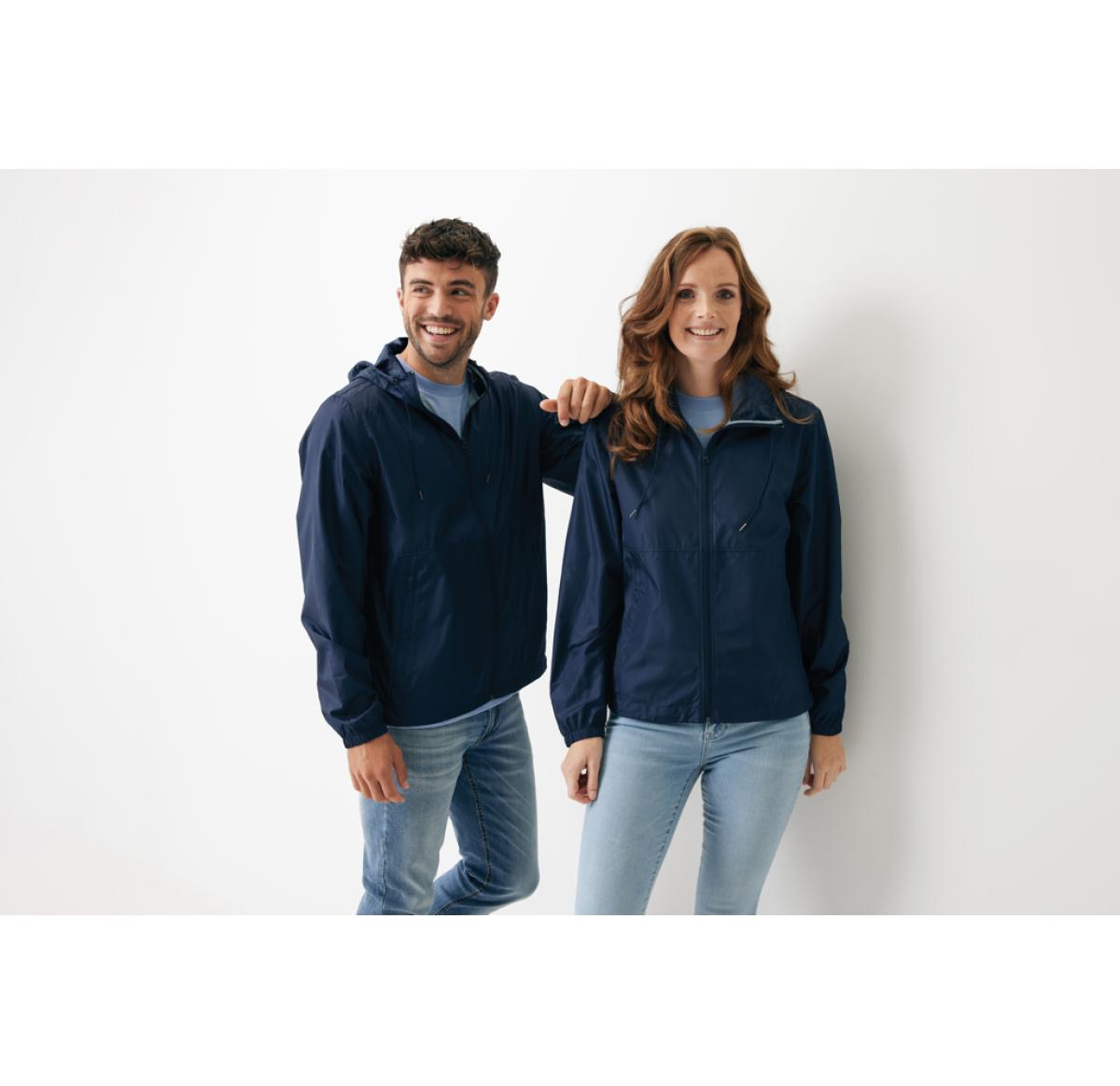 Unisex medium fit lightweight jacket made from 100% post-consumer recycled polyester in 70 G/M². The jacket has an adjustable hood with elastic string, a reversed zipper at the front and seam welt pockets. All zippers have extra zip pullers in matching colour for a refined look. The cuffs are fully elasticated. The back of the jacket is slightly longer and curved and the bottom hem has an elastic string and stoppers for better protection. Fluorine/PFAS free water repellent impregnation. The use of genuine recycled fabric materials and environmental impact claims are guaranteed, by using the AWARE™ disruptive physical tracer and blockchain technology. By scanning the QR code, you will gain access to a dedicated digital passport. 2% of proceeds of each sold product will be donated to Water.org. This product is OEKO-TEX® STANDARD 100 certified.