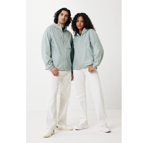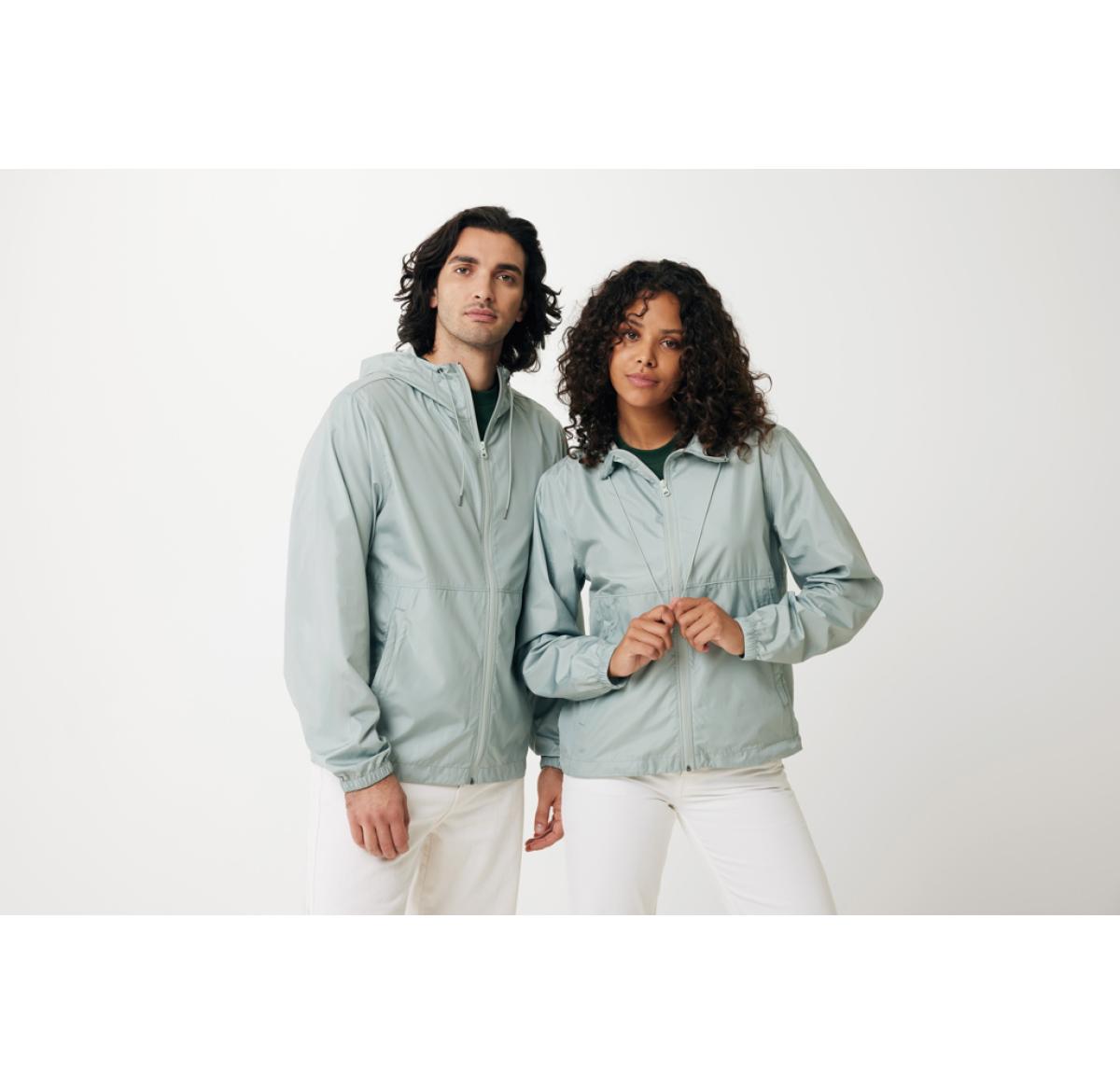 Unisex medium fit lightweight jacket made from 100% post-consumer recycled polyester in 70 G/M². The jacket has an adjustable hood with elastic string, a reversed zipper at the front and seam welt pockets. All zippers have extra zip pullers in matching colour for a refined look. The cuffs are fully elasticated. The back of the jacket is slightly longer and curved and the bottom hem has an elastic string and stoppers for better protection. Fluorine/PFAS free water repellent impregnation. The use of genuine recycled fabric materials and environmental impact claims are guaranteed, by using the AWARE™ disruptive physical tracer and blockchain technology. By scanning the QR code, you will gain access to a dedicated digital passport. 2% of proceeds of each sold product will be donated to Water.org. This product is OEKO-TEX® STANDARD 100 certified.