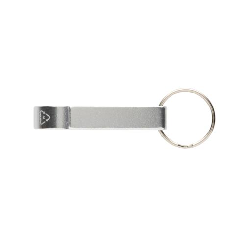 Strong bottle and can opener keychain made with RCS recycled alumimum. Total recycled content: 79% based on total item weight. RCS certification ensures a completely certified supply chain of the recycled materials. Packed in paper bag.