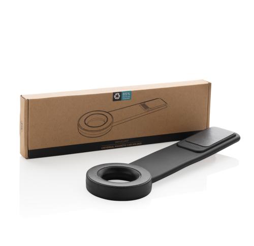 Upgrade your car interior with the stable and secure phone car holder. Designed to fit all car types even the newest electric models, it offers flexibility for different installation scenarios and is compatible with phone models that support magnetic mounting. With its strong magnetic attraction, it provides a secure hold on any road surface. It offers 360 degree installation of the phone. Made with recycled TPU, recycled aluminium and recycled ABS. Total recycled content: 85% based on total item weight. RCS certification ensures a completely certified supply chain of the recycled materials. Packed in FSC® mix packaging. PVC free.