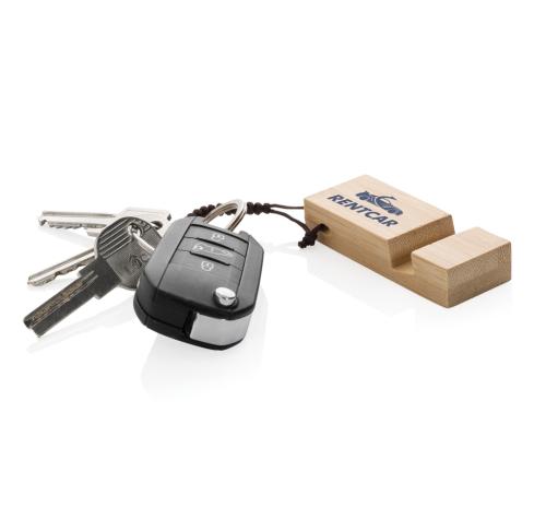 Branded Standkey Bamboo Keychain Phone Stand Brown