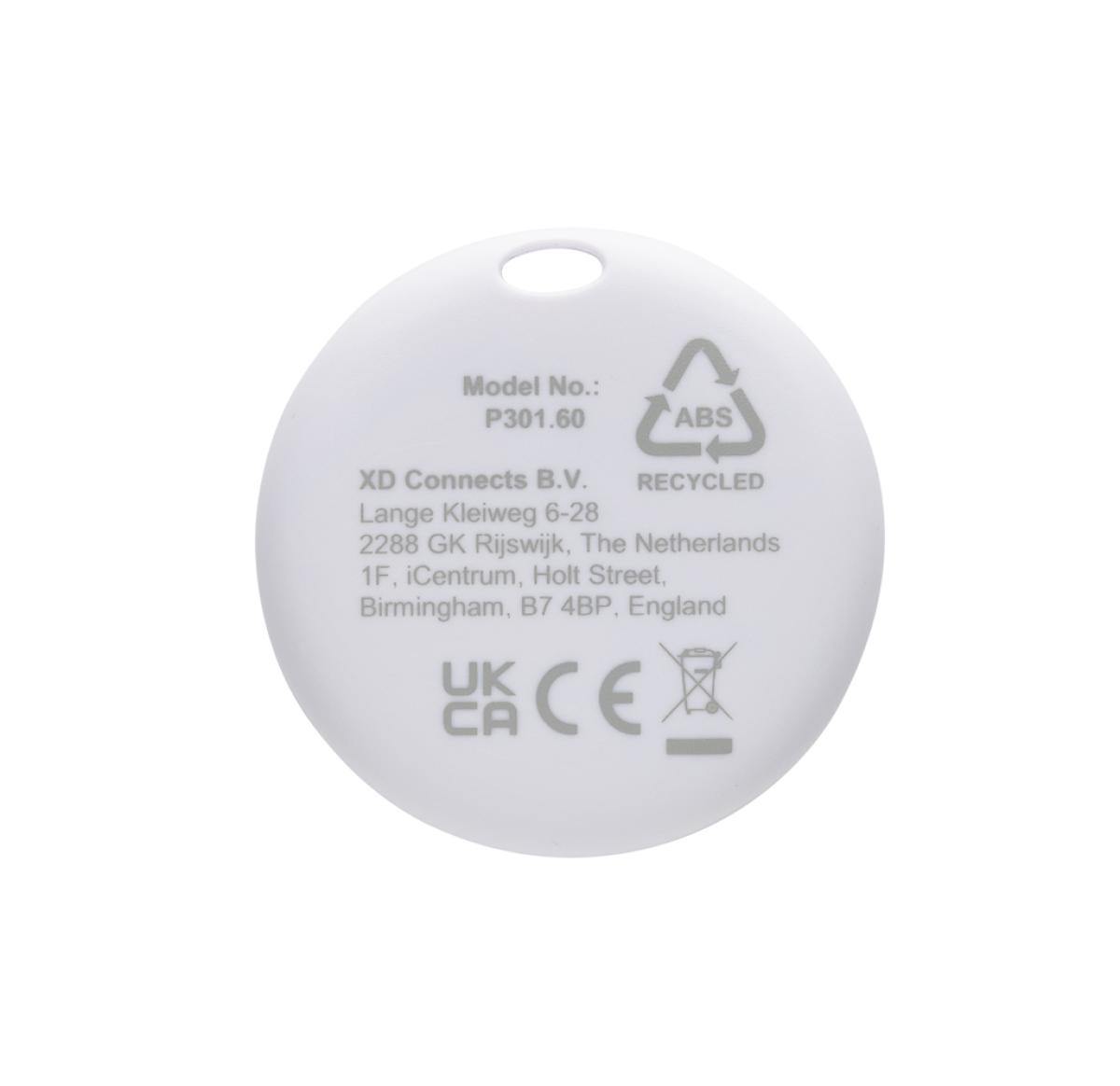 Keep track of your favourite items, no matter where in the world you are with this recycled ABS item finder. Attach the item finder to your wallet, key or add it to a bag, luggage or even your pet to locate it easily using the Apple Find My App. Compatible with all Apple devices (iphone, ipad, iwatch, MAC) With lost mode to notify you when you are leaving your belongings. With integrated beeping signal via speaker to find your devices when you are near. Battery life depending on usage up to 1 year, after that the CR2032 can be replaced. Packed in plastic-free FSC mix box. Total recycled content: 50% based on total item weight. RCS certification ensures a completely certified supply chain of the recycled materials. PVC free.