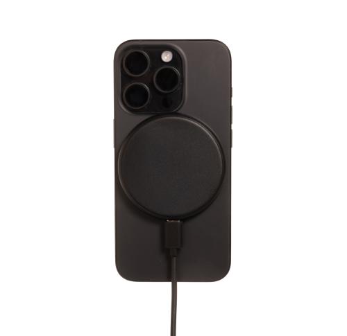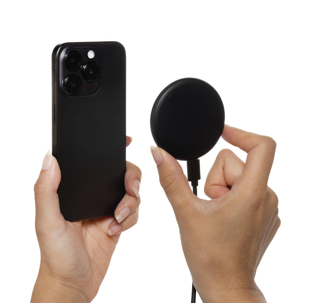 Unique design 15W magnetic wireless charger that gives you the option to charge either your mobile device, earbuds or iWatch. Simply click them on and start charging. Made with recycled ABS and recycled TPE. Total recycled content: 35% based on total item weight. RCS certification ensures a completely certified supply chain of the recycled materials. Including 120 cm USB A to USB C charging cable made from RCS certified recycled TPE. Packed in FSC® packaging. PVC Free. Output 9V.2.2A Output watch: 9V/0.4A, Output earbuds: 9V/0.5A. Input 9V/3A.