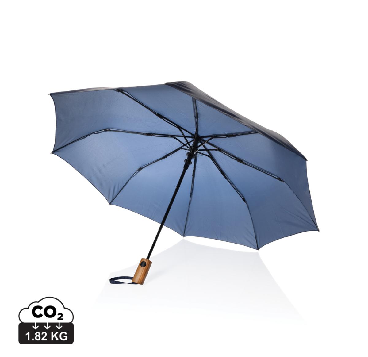 Kaycey 21" AWARE™ RPET Acacia Wood Mini Auto Open Umbrella Navy