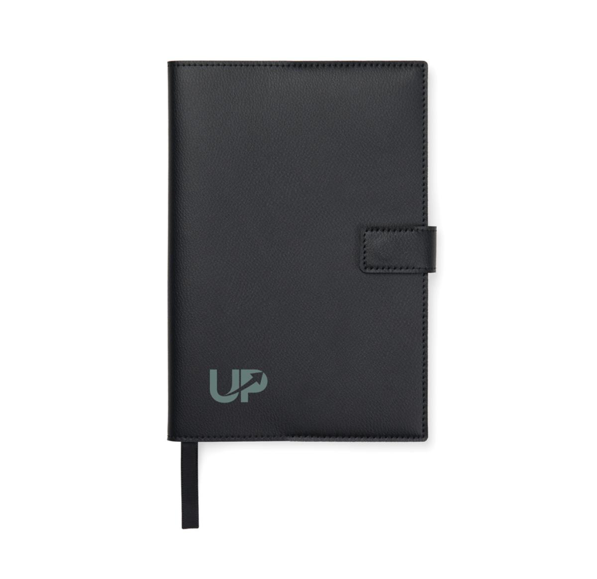 Experience functionality and style with Timo. It strikes the perfect balance of size and durability. Featuring a PU cover, RCS paper pages, 80 sheets/160 pages of lined paper, and a black ribbon bookmark. Detail stitching and a magnetic closure add sophistication, while the replaceable paper insert ensures prolonged use. Certified by RCS (Recycled Claim Standard), RCS certification guarantees that the entire supply chain of recycled materials is certified. The total recycled content is based on the overall product weight. This product contains 63% RCS certified recycled paper and 15% RCS certified recycled polyester.