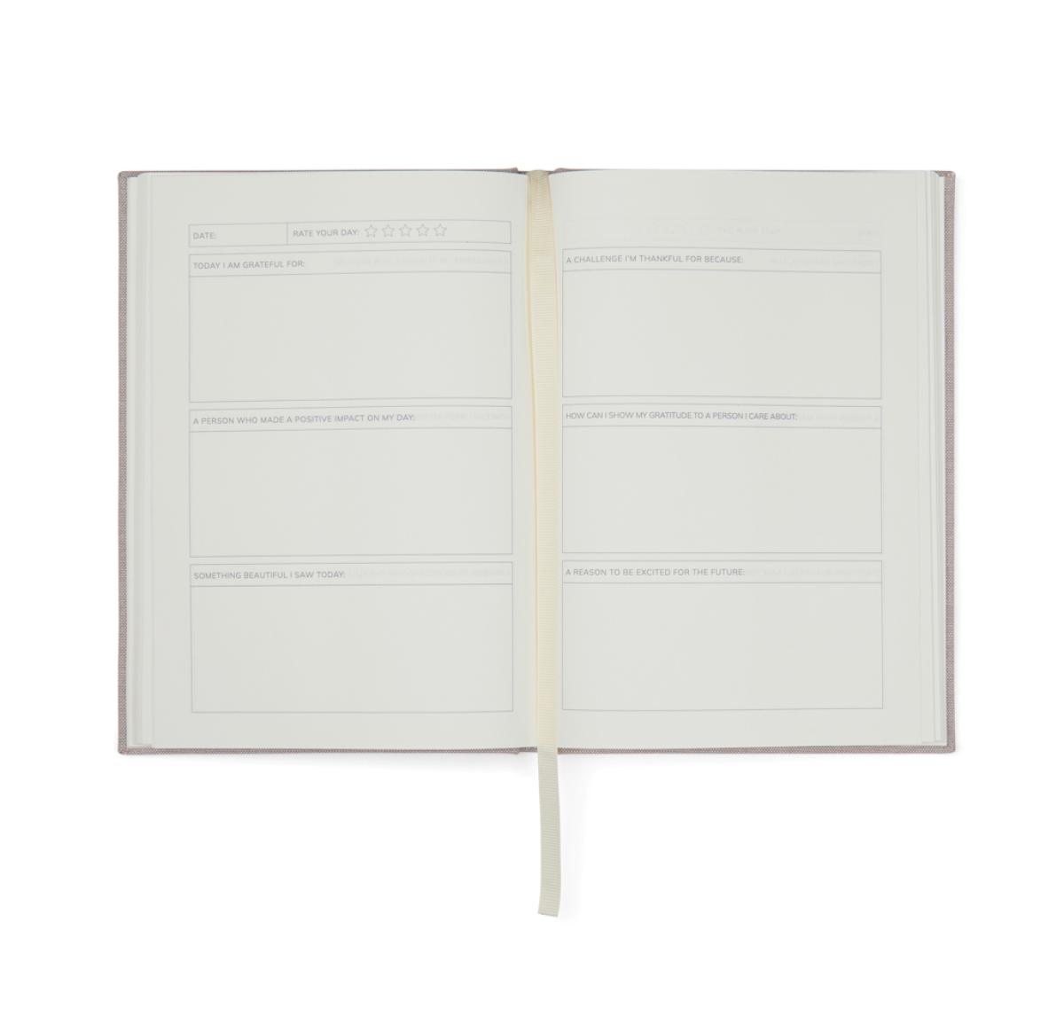 Start your journey today with the Thankfulness journal and witness the gradual transformation of your mindset over time. Capturing the beauty of everyday experiences and reflections. Its templated A5 pages, featuring specific questions and fill-in boxes, provide an effortless way to document your thoughts. With its timeless and elegant design, the notebook seamlessly complements any interior decor. Complete with a ribbon bookmark and a fabric cover. Certified by GRS (Global Recycled Standard), GRS certification guarantees that the entire supply chain of the recycled materials is certified. The total recycled content is based on the overall product weight. This product contains 73% GRS certified recycled paper.