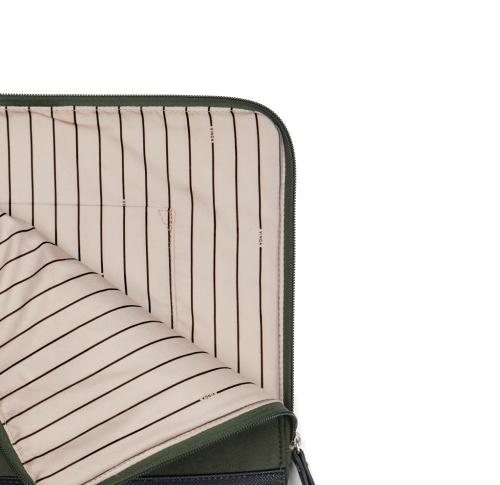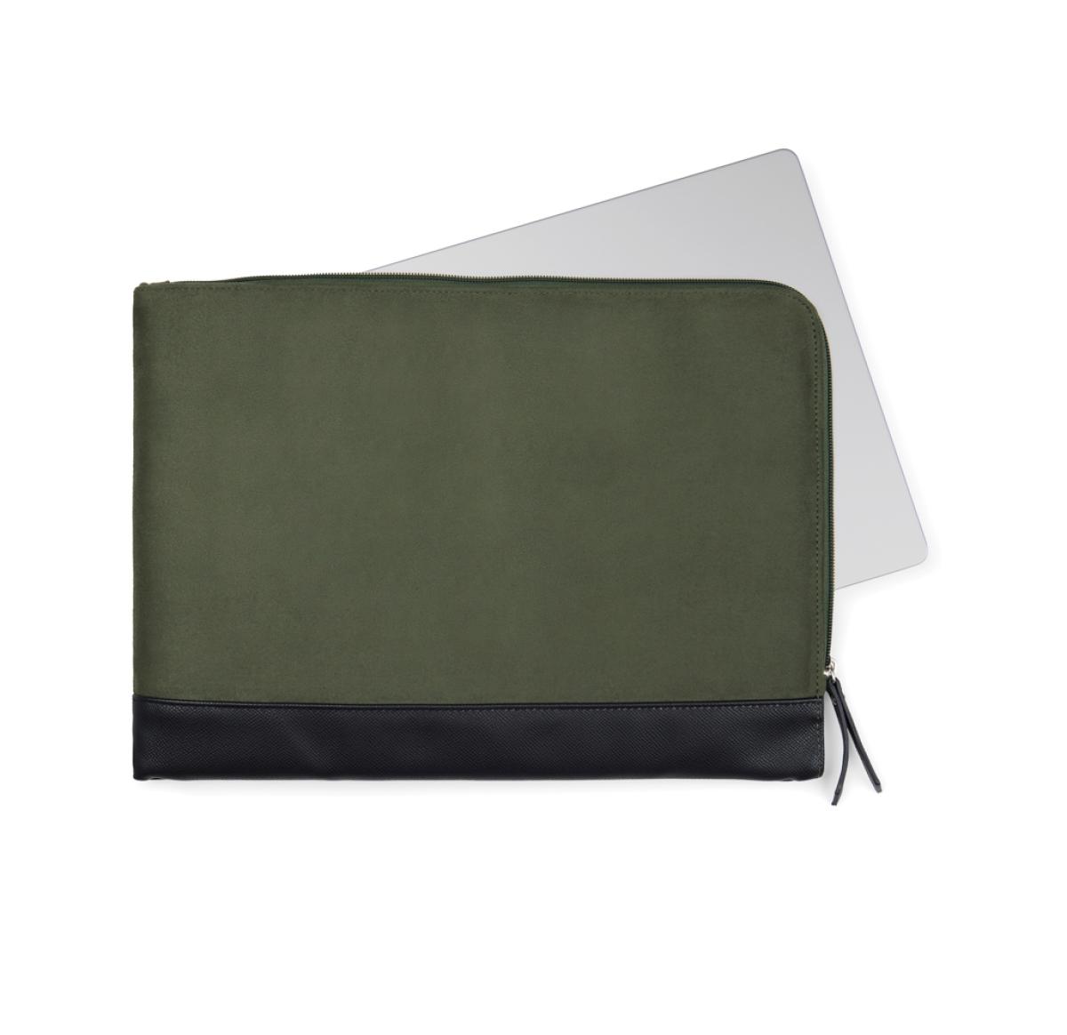 Protect your laptop in style with this sleek padded sleeve. Features an extra long zipper closure for easy access. Inside, a convenient pocket for smaller items. Please note: Display dimensions may vary from laptop dimensions. Marlow series crafted from recycled faux suede with PU details and lining in recycled polyester. Finished with sleek silver hardware. Certified by RCS (Recycled Claim Standard), RSC certification guarantees that the entire supply chain of recycled materials is certified. The total recycled content is based on the overall product weight. This product contains 49% RCS certified recycled polyester and 3% RCS certified recycled polyurethane