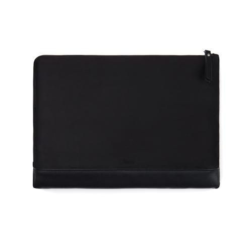 Protect your laptop in style with this sleek padded sleeve. Features an extra long zipper closure for easy access. Inside, a convenient pocket for smaller items. Please note: Display dimensions may vary from laptop dimensions. Marlow series crafted from recycled faux suede with PU details and lining in recycled polyester. Finished with sleek silver hardware. Certified by RCS (Recycled Claim Standard), RSC certification guarantees that the entire supply chain of recycled materials is certified. The total recycled content is based on the overall product weight. This product contains 49% RCS certified recycled polyester and 3% RCS certified recycled polyurethane.