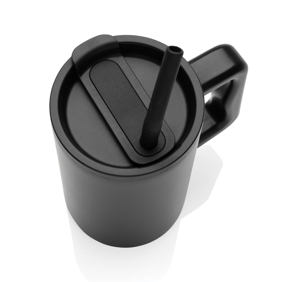 Indulge in the robust embrace of our generously sized 800ml mug – substantial and perfect for on your office desk. Its sturdy handle and broad base make it an ideal companion for your daily water intake in the office. Crafted from durable recycled stainless steel, this mug is designed to meet your hydration needs.This hefty, double-walled, vacuum-insulated mug comes equipped with a secure lid, straw, and a silicone straw tip. Versatile enough for both piping hot and ice-cold beverages, the screw-on lid offers a dual function – a convenient drinking spout or the option to use a straw. For optimal care, we recommend handwashing this substantial mug