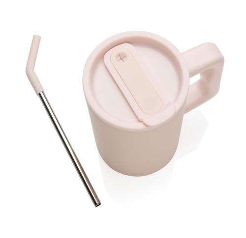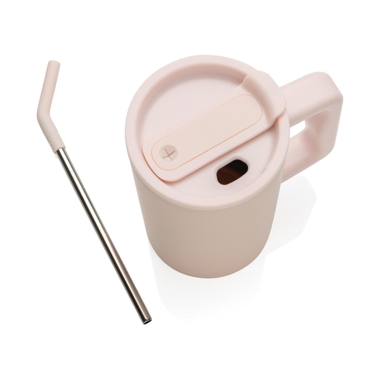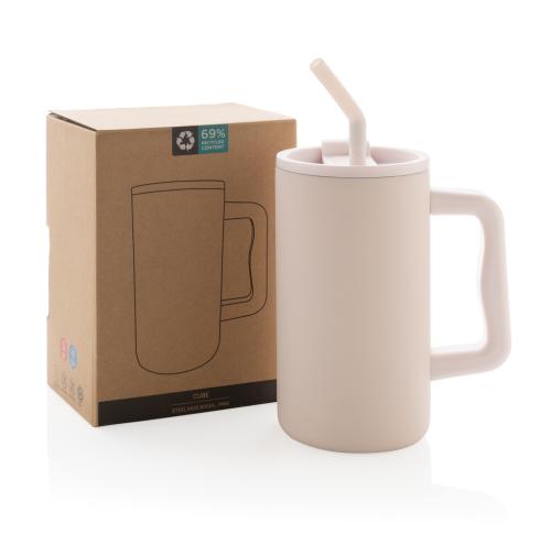 Indulge in the robust embrace of our generously sized 800ml mug – substantial and perfect for on your office desk. Its sturdy handle and broad base make it an ideal companion for your daily water intake in the office. Crafted from durable recycled stainless steel, this mug is designed to meet your hydration needs.This hefty, double-walled, vacuum-insulated mug comes equipped with a secure lid, straw, and a silicone straw tip. Versatile enough for both piping hot and ice-cold beverages, the screw-on lid offers a dual function – a convenient drinking spout or the option to use a straw. For optimal care, we recommend handwashing this substantial mug