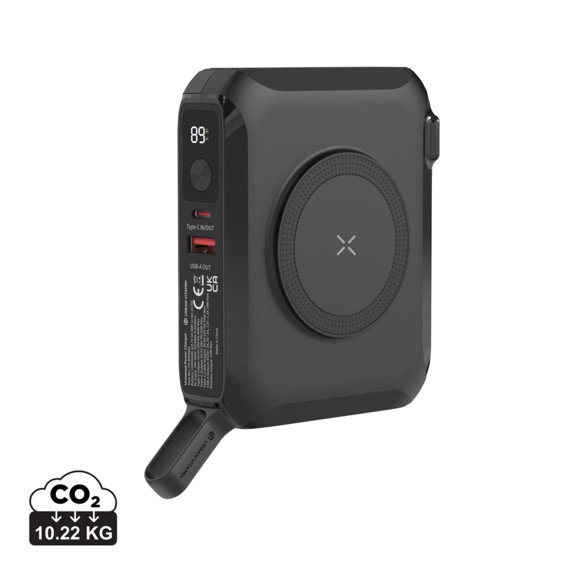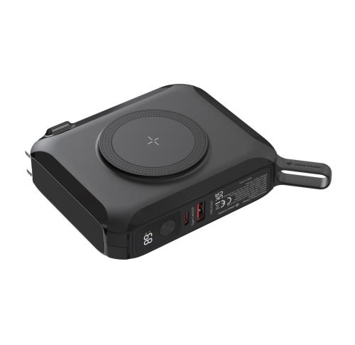 The Oxnard 5 in 1 65W universal charger is a powerful portable device that will elevate your charging experience to new heights with unrivaled versatility, convenience, and power-packed performance, all in one sleek package. This charger features a 15W magnetic charger for the latest iOS and Android phones. With a colossal 15,000mAh battery capacity and a robust PD 65W Type-C output via the integrated type C cable, you can fuel your devices at lightning speed, including laptops demanding high power. Oxnard is also equipped with a fast charging type C in/out port and a USB A output port. Equipped with 4 types of AC plugs, conquer charging challenges in over 150 countries with ease. Say goodbye to charging dilemmas as you power up to 4 devices simultaneously, while charging the charger itself when connected to a power socket, ensuring no device is left behind. The compact dimensions make it the perfect travel companion, perfect for on-the-go use.