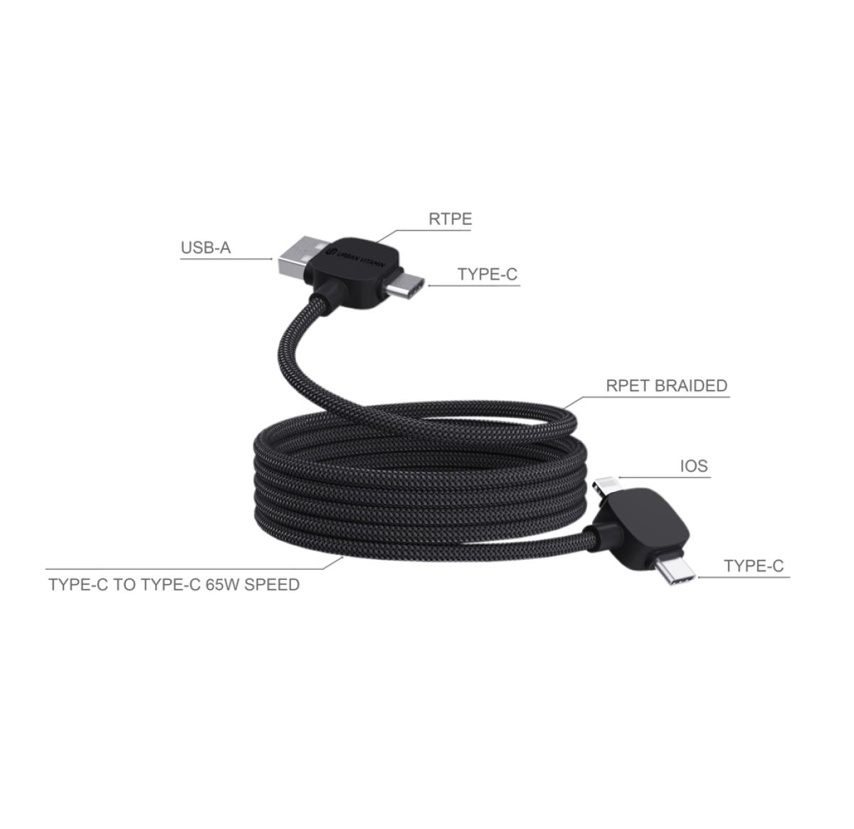 Urban Vitamin Stockton 65W RCS RTPE/RPET Magnetic Cable Black