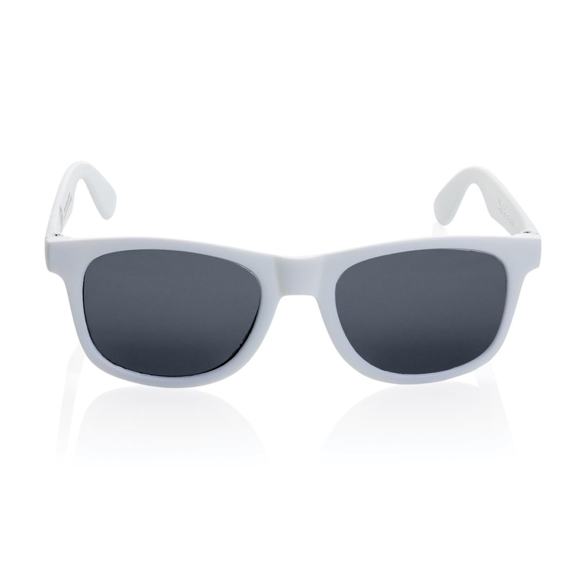 Sunglasses made with RCS certified recycled PP frame. Recycled content of frame is 100%. Total recycled content: 66% based on total item weight. RCS certification ensures a completely certified supply chain of the recycled materials. The lenses are smoky acrylic and conform to EN ISO 12312-1,UV 400 and CAT 3. Packed in an FSC® kraft sleeve.