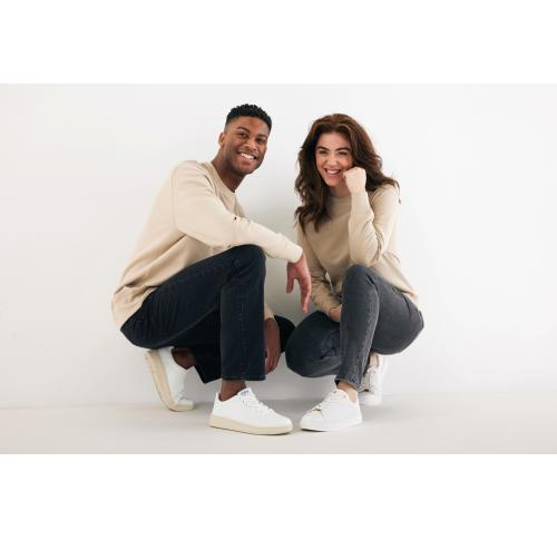 Unisex modern fit crew neck made from 100% cotton, of which 70% is organic and 30% recycled, 280 G/M². The crewneck has long sleeves and 1x1 rib at neckline, cuffs and bottom hem. The inside is soft-brushed fleece for extra comfort. The use of genuine recycled & organic fabric materials and environmental impact claims are guaranteed, by using the AWARE™ disruptive physical tracer and blockchain technology. By scanning the QR code, you will gain access to a dedicated digital passport of the product. 2% of proceeds of each sold product will be donated to Water.org. This product is OEKO-TEX® STANDARD 100 2303045 Centexbel certified. Due to the nature of recycled yarns, impurities and colour variations may appear.