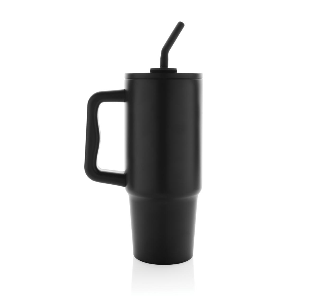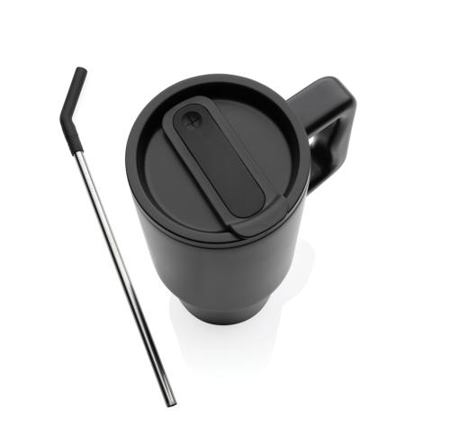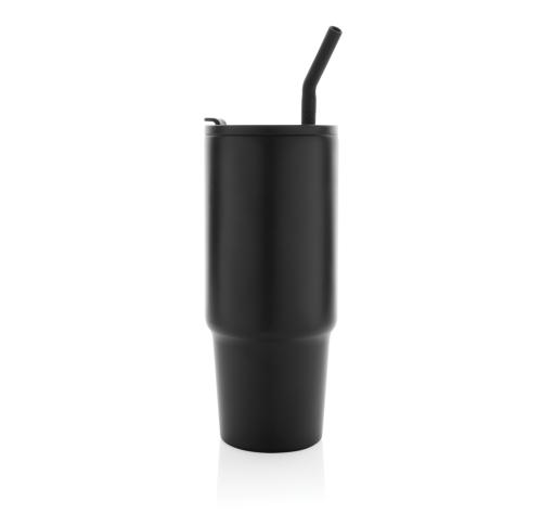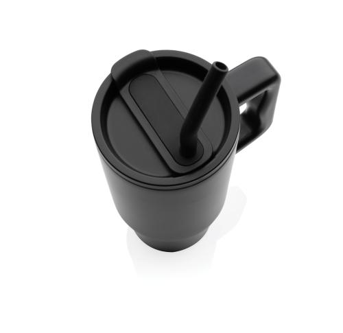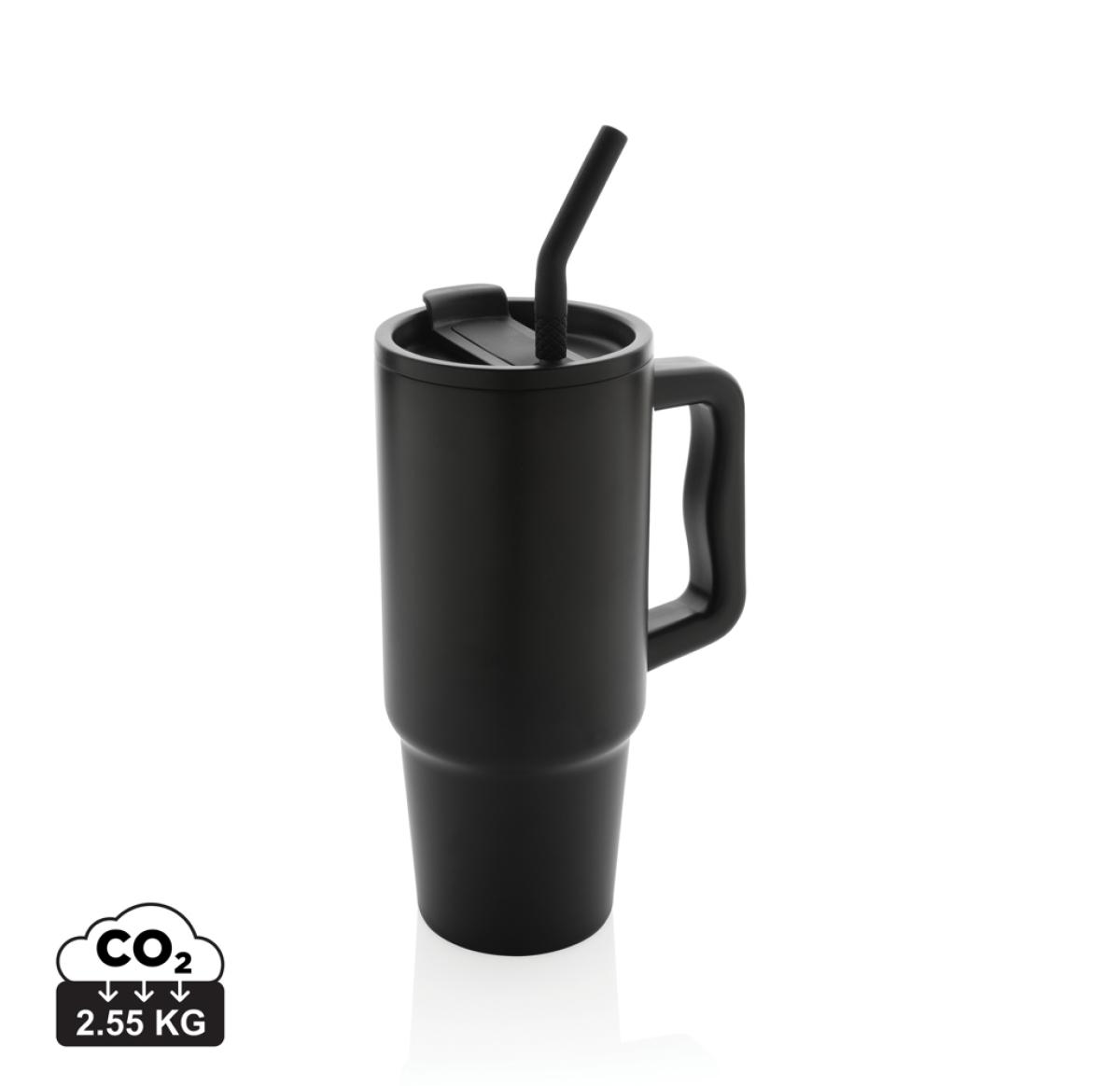 Experience the spacious yet conveniently portable embrace of our generously sized tumbler – not too big, not too small. Its comfort-grip handle and slim base make it a perfect fit for most cup holders, ensuring you stay refreshed whether you're enduring a long day of meetings, conquering a rowing class, or embarking on a trip out of town. Crafted from durable recycled stainless steel, this 900 ml. tumbler rises to the hydration challenge. This double-walled, vacuum-insulated tumbler comes complete with a spill secure lid, recycled steel straw, and a silicone straw tip. The screw-on lid boasts a dual function, offering a convenient drinking spout or the option to use a straw. We recommend handwash. RCS certification ensures a completely certified supply chain of the recycled materials. Total recycled content: 70% based on total item weight. BPA free.