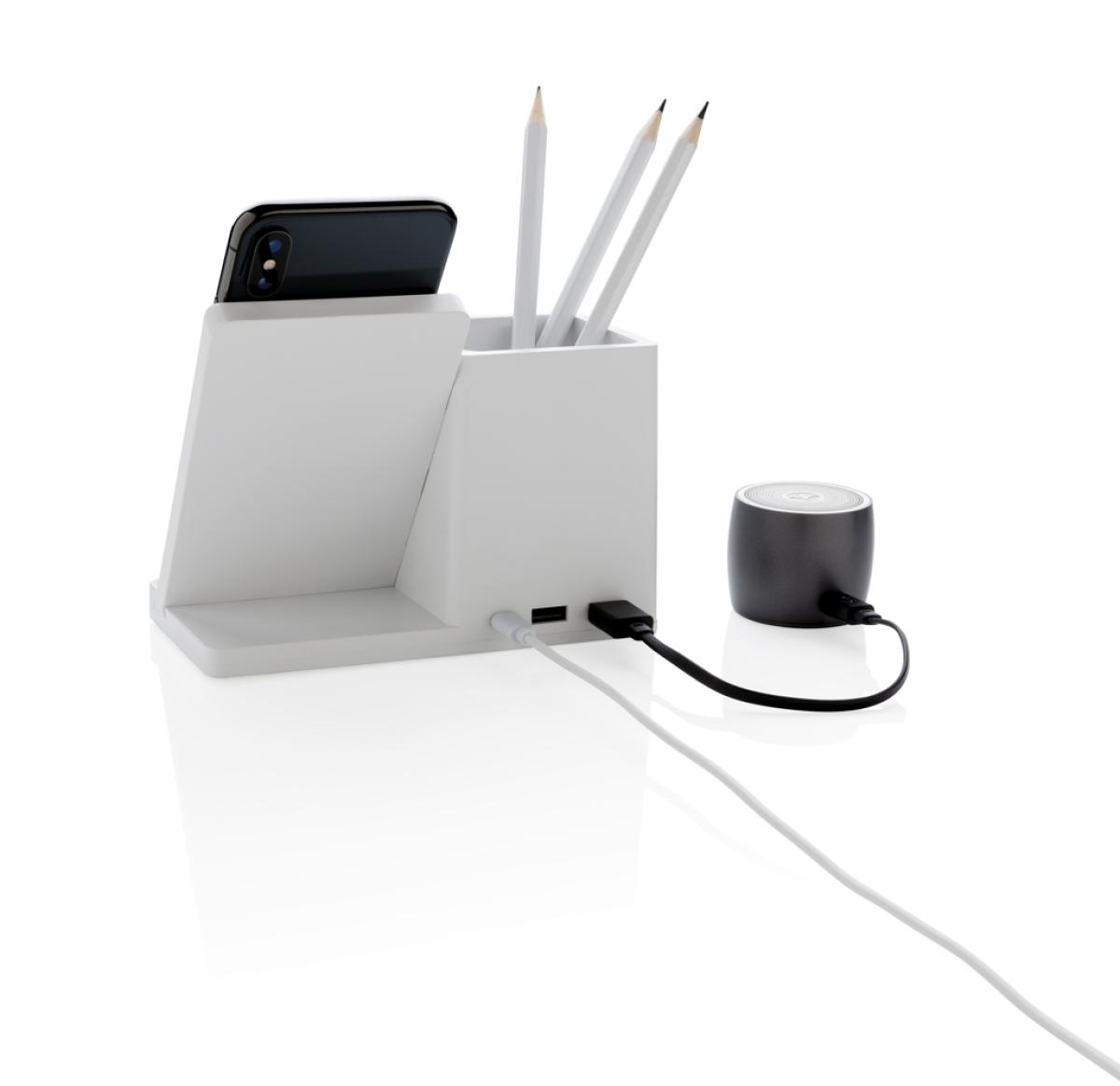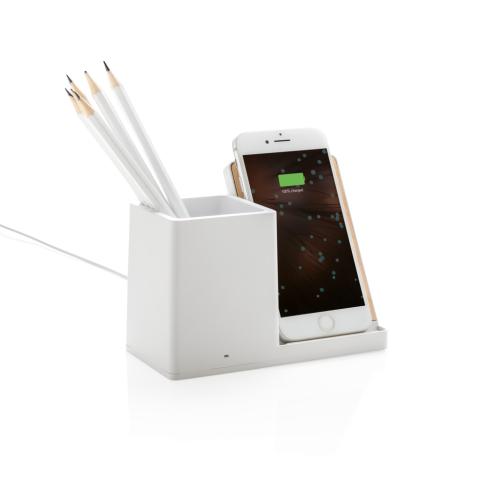 Update your desk with this super convenient wireless charger. Made out of ABS and 100% natural bamboo this wireless charger integrates perfectly on your desk or your living room. The wireless charger is a 5W charger and comes with a 150 cm micro USB cable