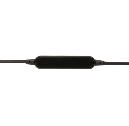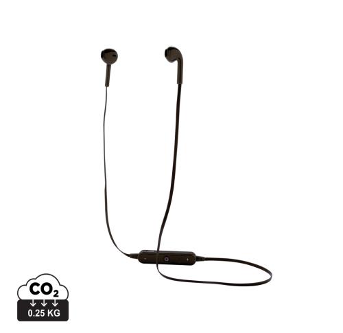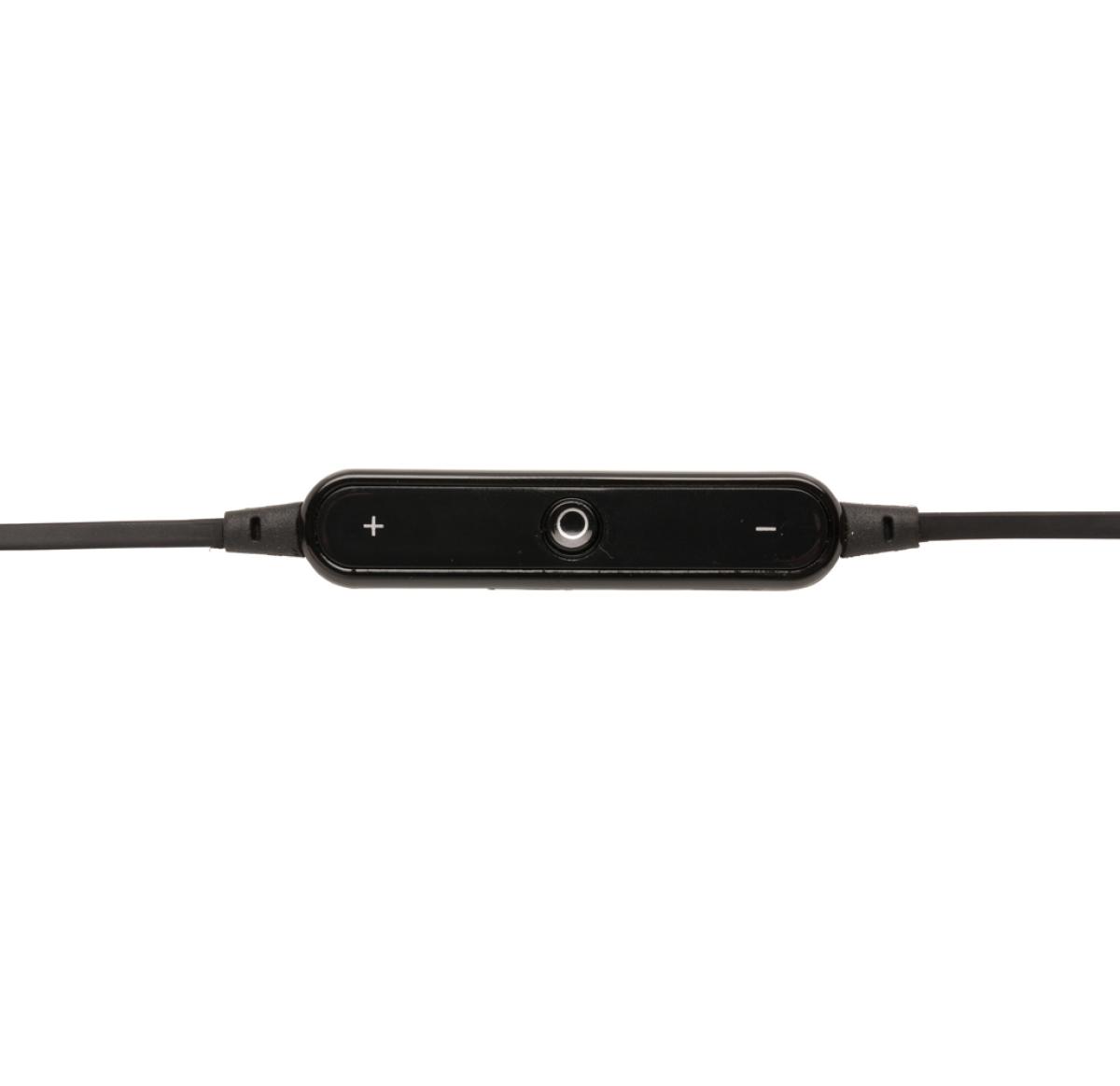 Wireless earbuds with 60 cm wire TPE cable. The earbuds are suitable for both sport and daily use because of their comfortable fit. Includes microphone to pick up and answer calls and volume buttons to control the volume. The device uses wireless BT 4.0