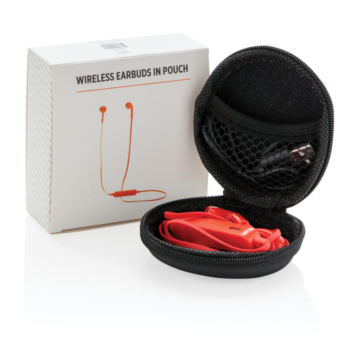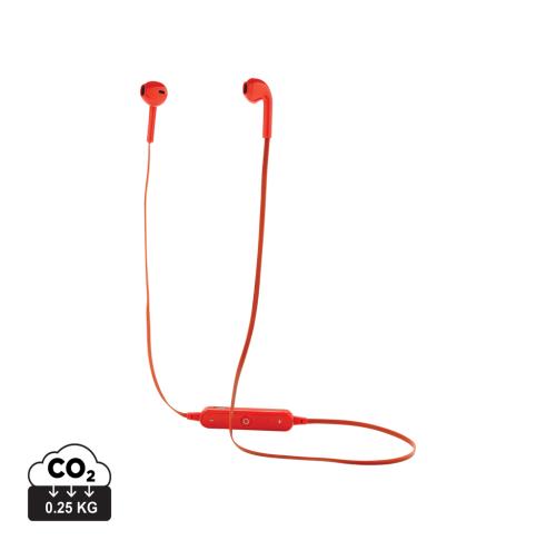 Wireless earbuds with 60 cm wire TPE cable. The earbuds are suitable for both sport and daily use because of their comfortable fit. Includes microphone to pick up and answer calls and volume buttons to control the volume. The device uses wireless BT 4.0