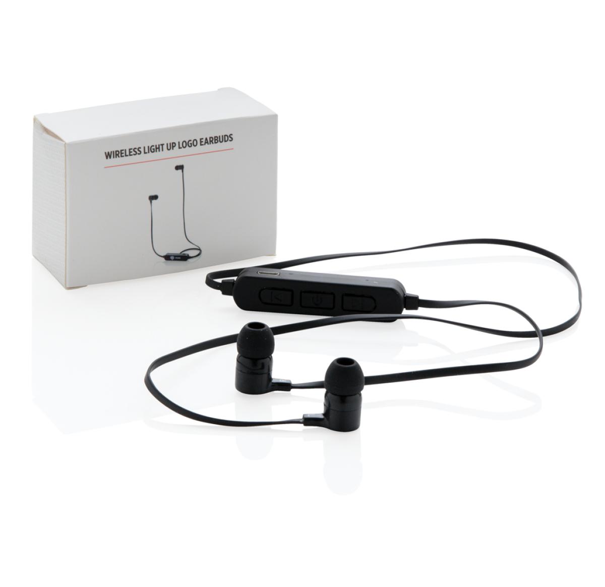 Wireless earbuds that can be customised with your logo to light up on the control panel for optimal exposure of your brand. The earbuds use BT 4.2 for smooth connection up to 10 metres. The built-in 55 mAh battery allows you to play music for up to 3 hour