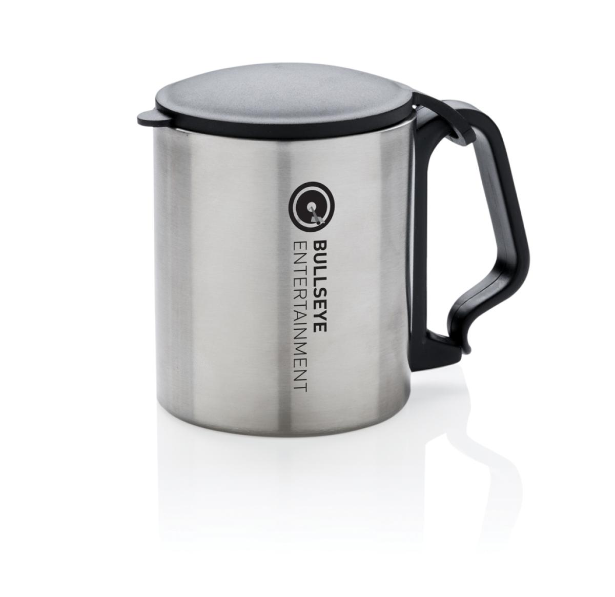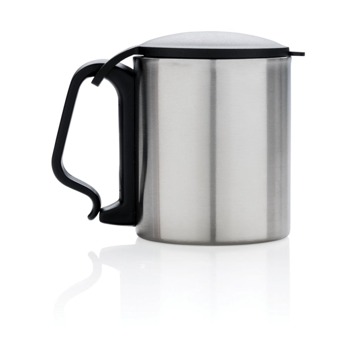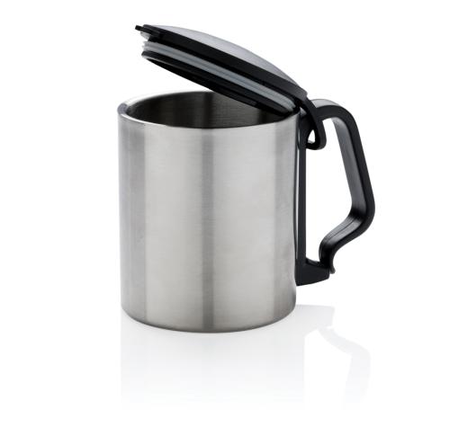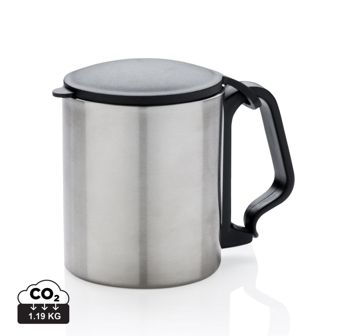 Double wall stainless steel mug with PP lid and handle. Capacity 200 ml.