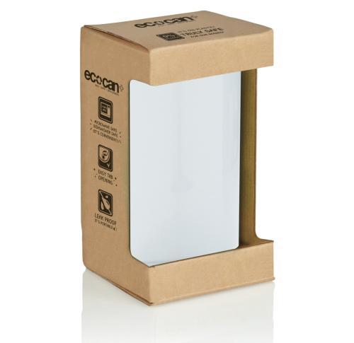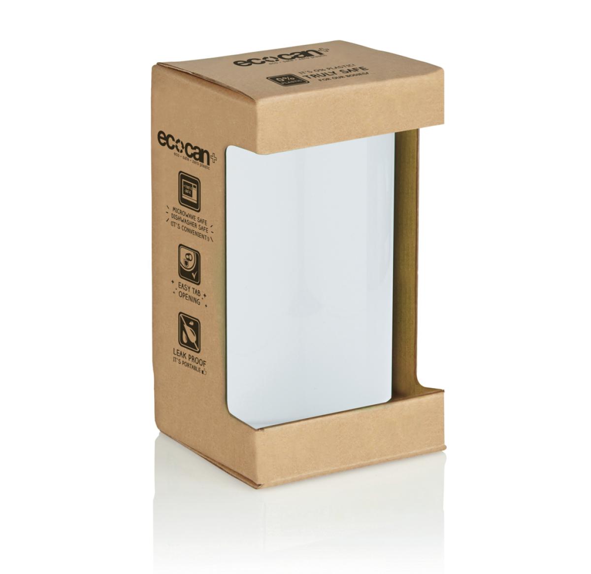 This drinking can (330 ml) is made 100% out of PLA. Because of this the can is compostable at the end of its life cycle. The can is microwave and dishwasher safe. Packed in kraft gift packaging.