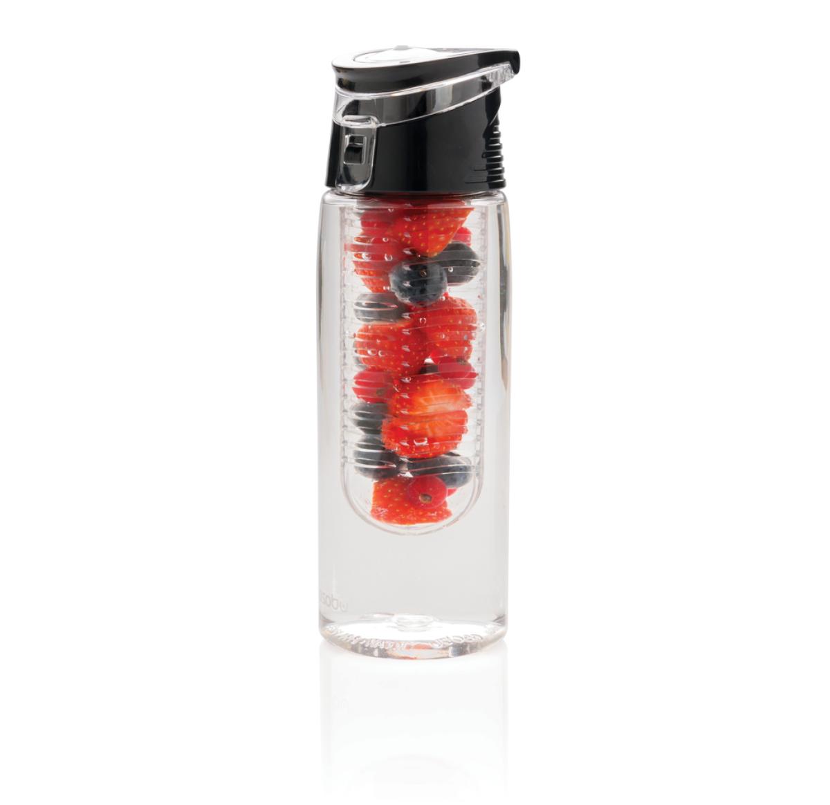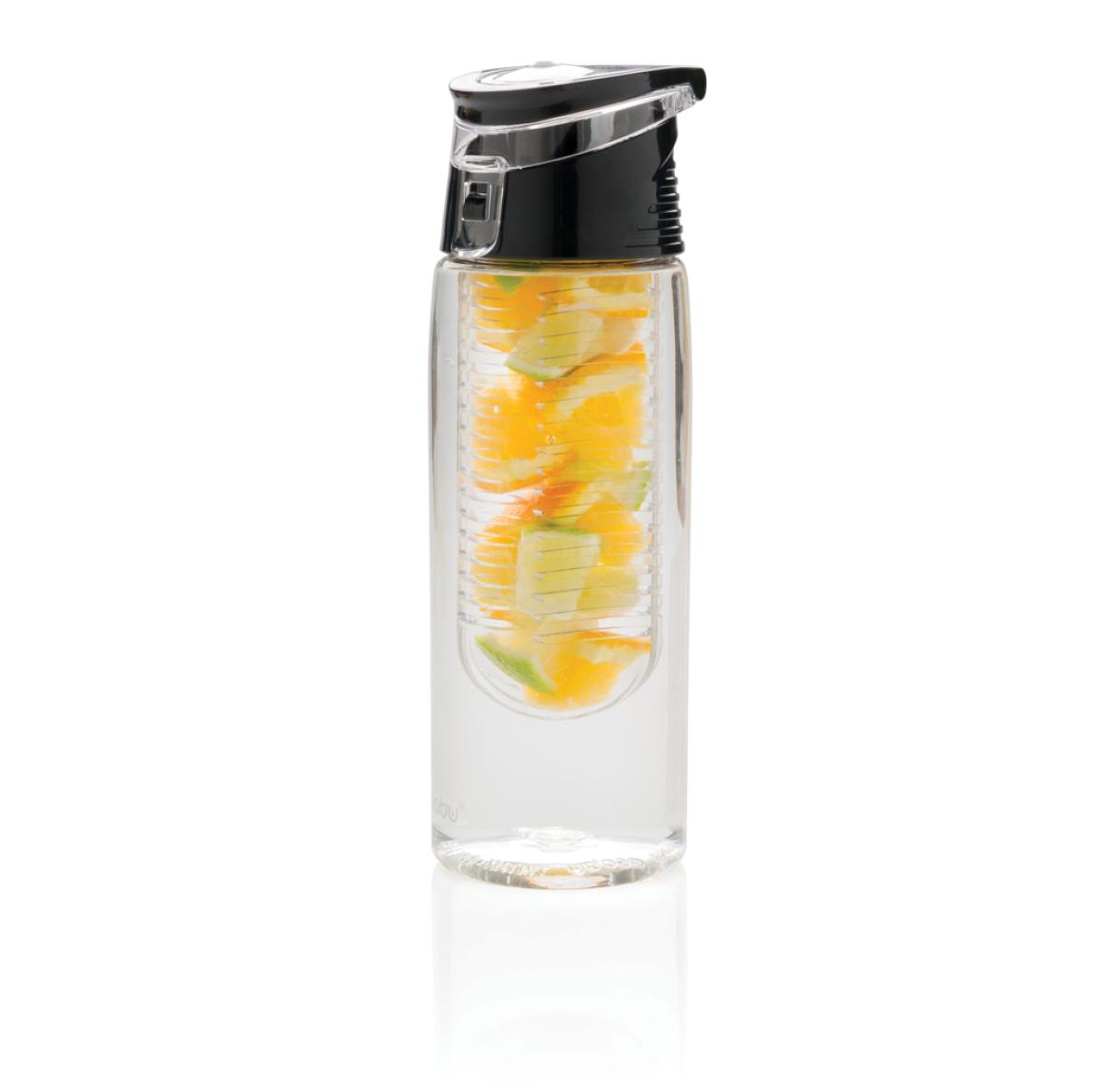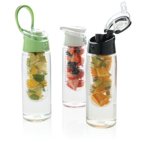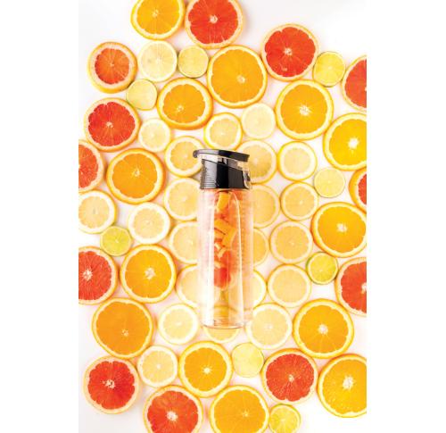 Trendy infuser bottle to flavour your water with your favourite fruit or herbs. The body is made out of tritan material so it is scratch proof and durable. The lid is made out of ABS and has a locking system so you can take your flavoured water wherever y