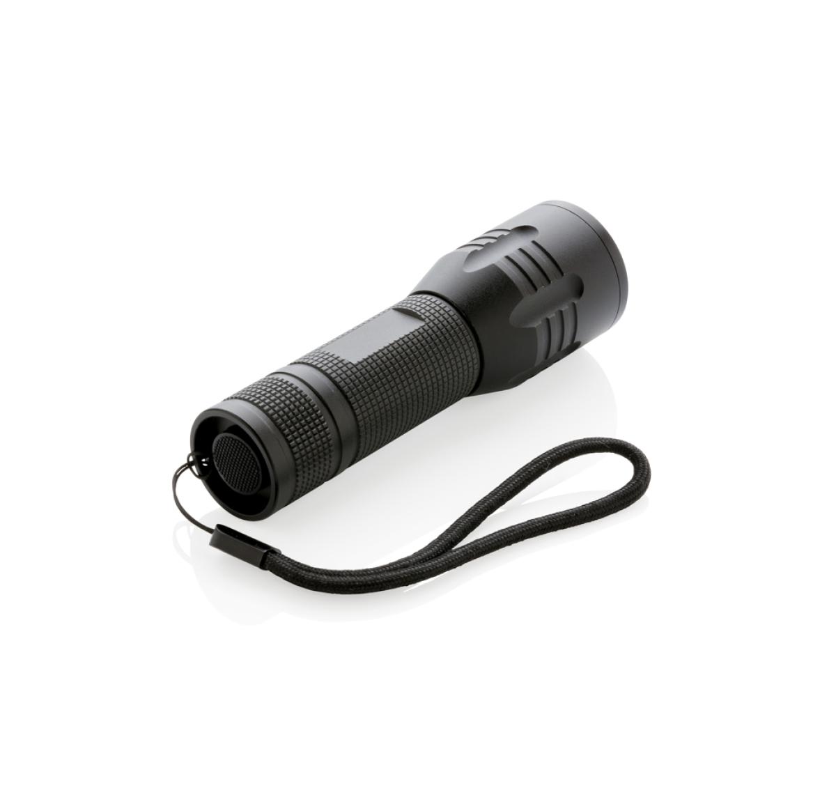 Super bright and strong 3W CREE torch perfect for longer performance. The aluminium torch has special CREE led’s that light up much brighter than regular LED lights for perfect exposure. Includes batteries for direct use. 100 lumen and working time of aro