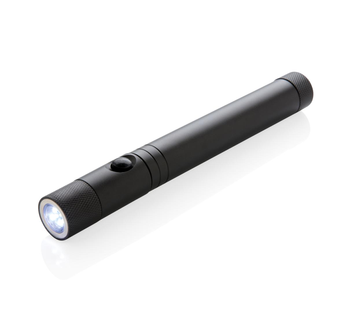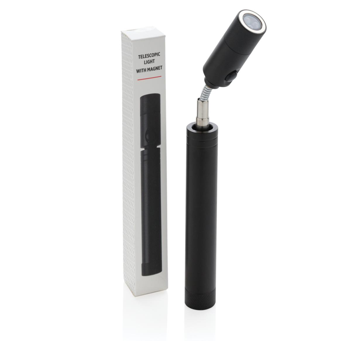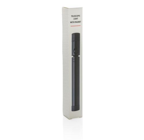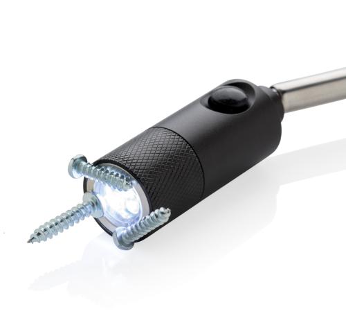 The perfect tool for any need, this double magnetic LED work light is great for attaching to any metal surface for optimal lightning. This aluminium flashlight allows you to extend from its normal size of 17cm to 58cm allowing you to pick up items that a