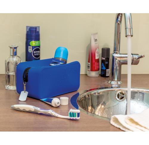 The use of 100% silicone material makes this toiletry bag unique. The silicone is leak proof, heat proof, and slip resistant. It prevents spillage in your suitcase and is easy to clean with water. Size: 19x10x10cm.