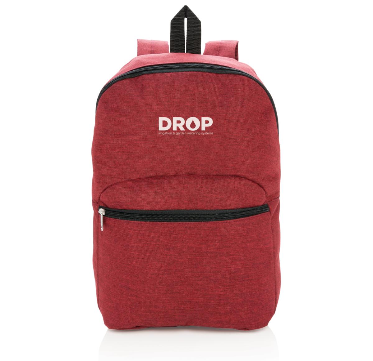 Compact and lightweight standard 600D two tone polyester backpack for everyday journeys. With an easy access front zippered pocket it’s your ideal travel companion.