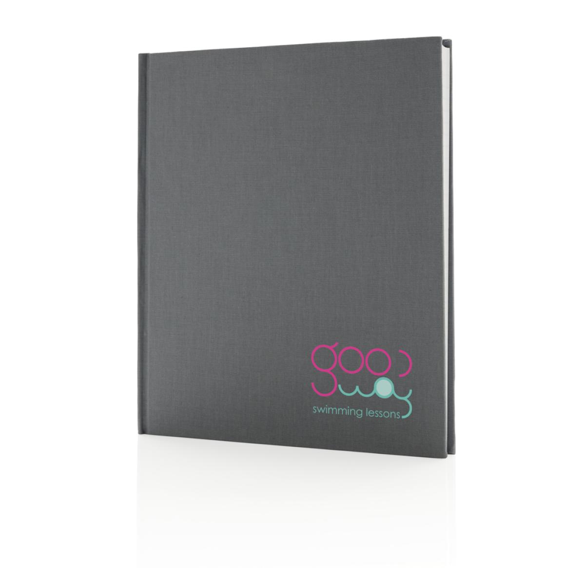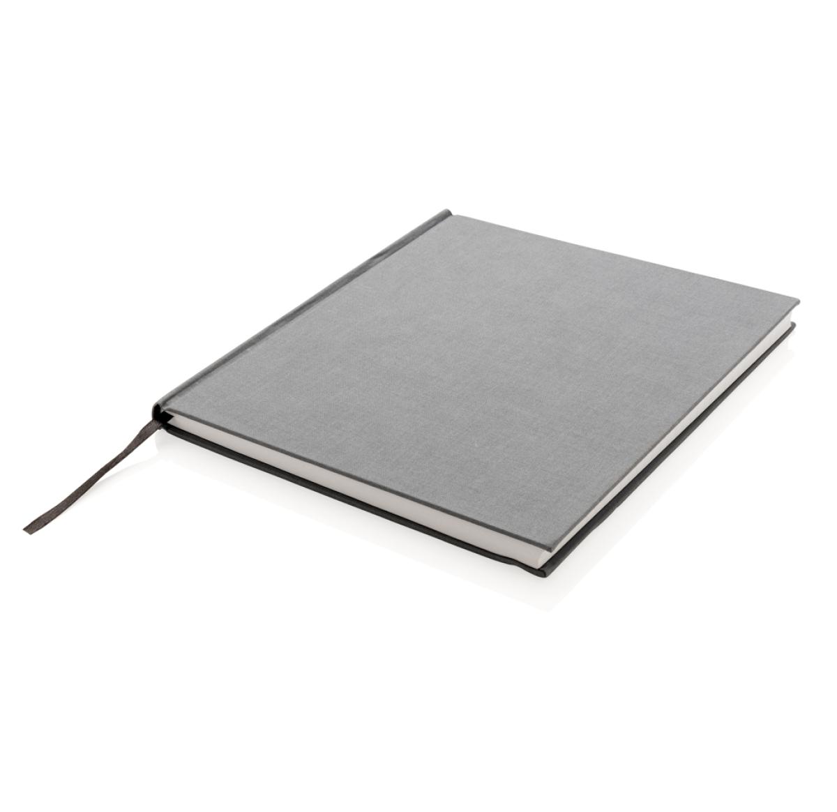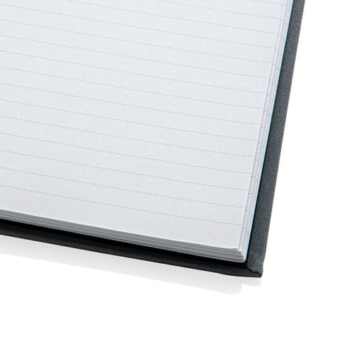 Deluxe notebook with cover in high quality bookbinding cloth. With 96 sheets/192 pages of 80 g/m2 white paper. With bookmark ribbon.