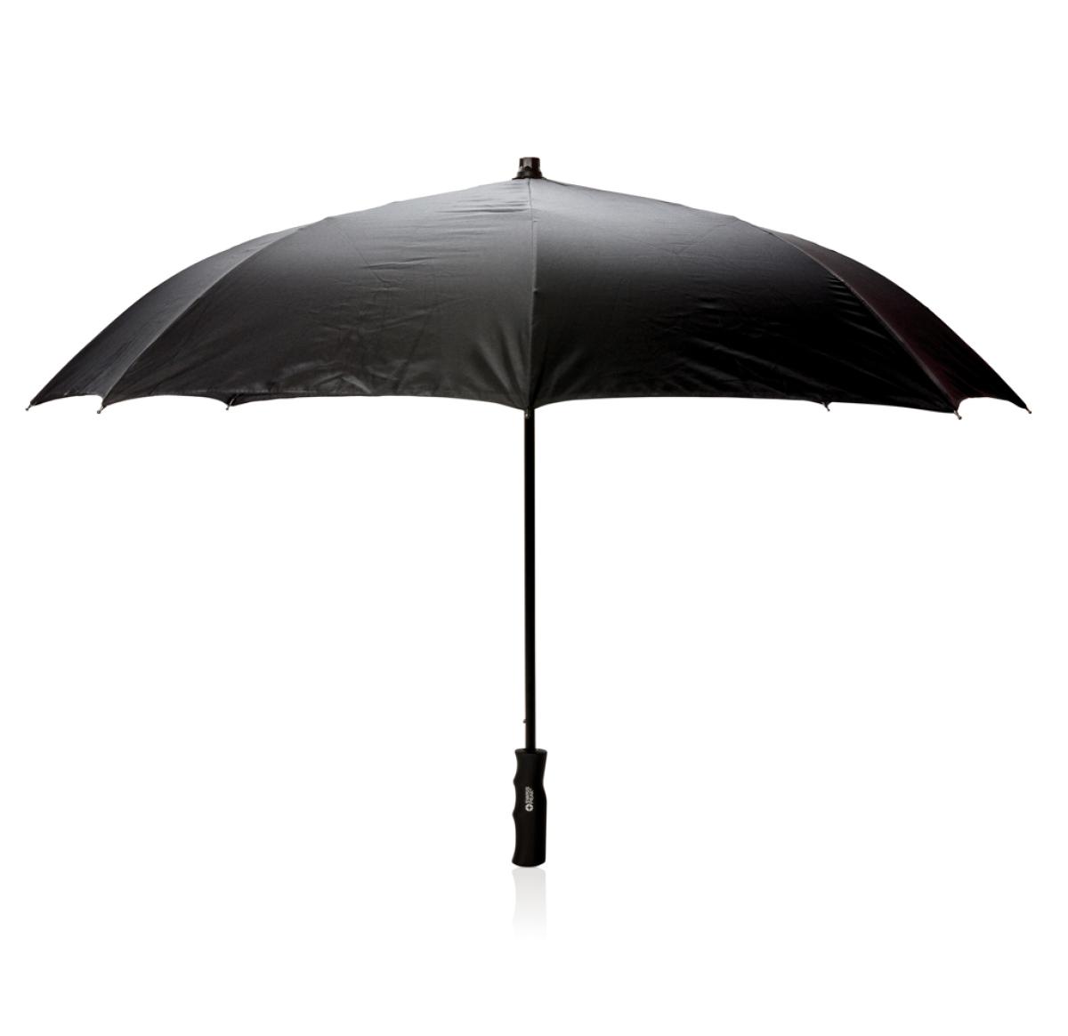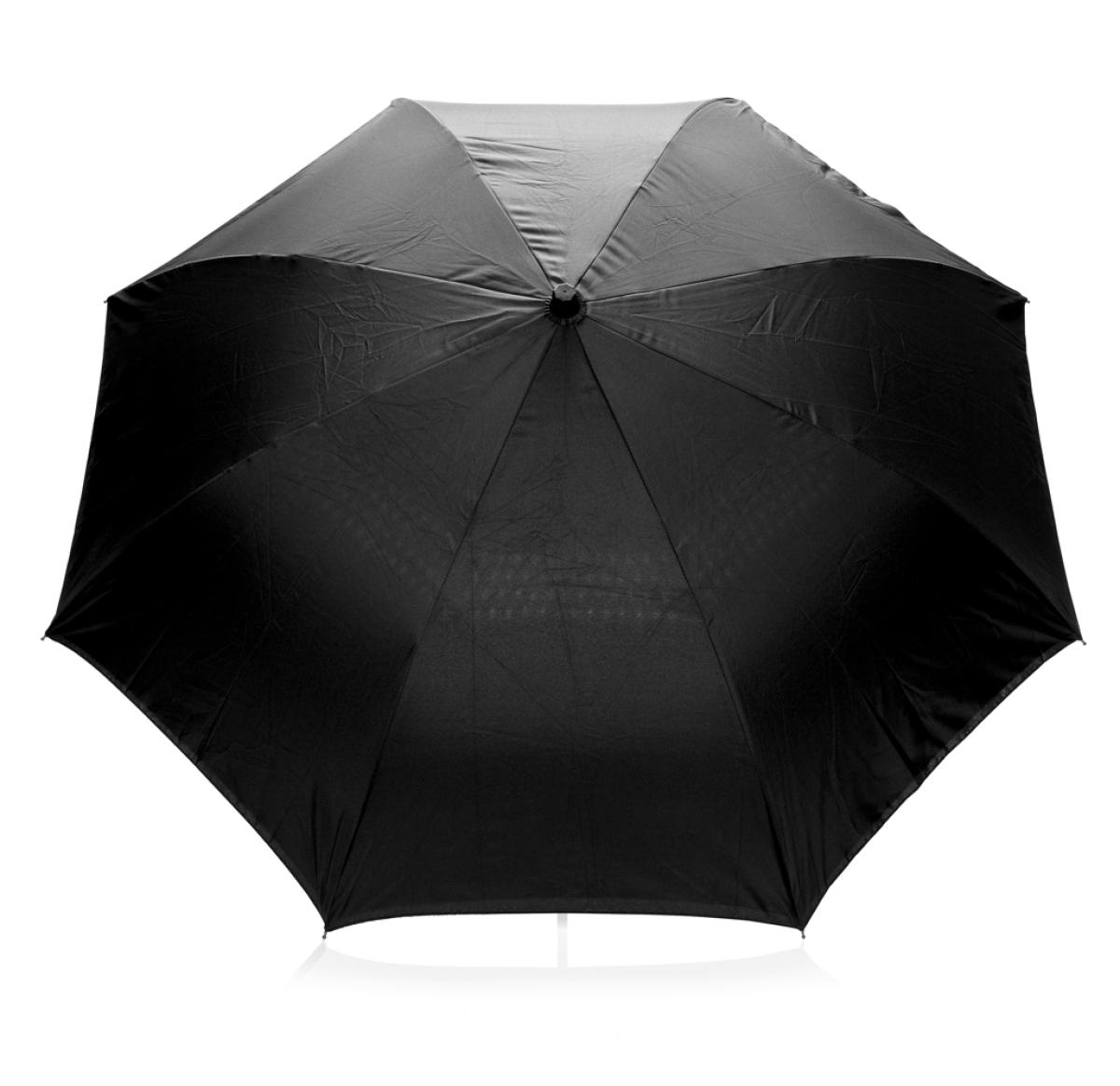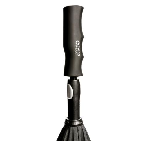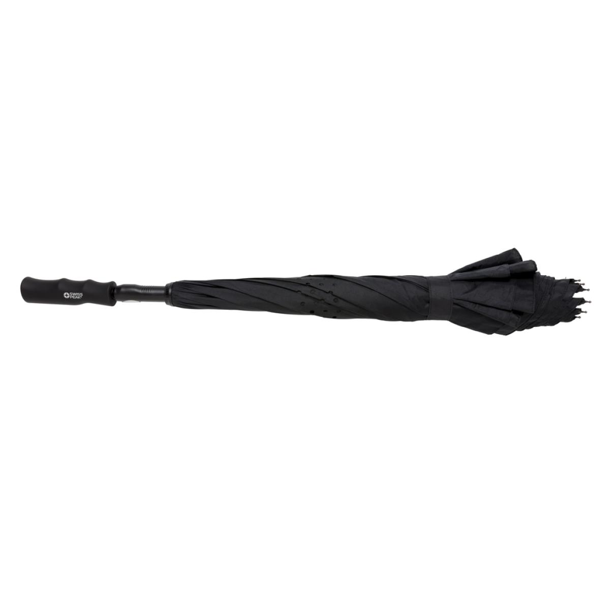 23’’ reversible umbrella in 190T pongee fabric with automatic opening and manual closing. Full fibreglass ribs and frame with windproof system.