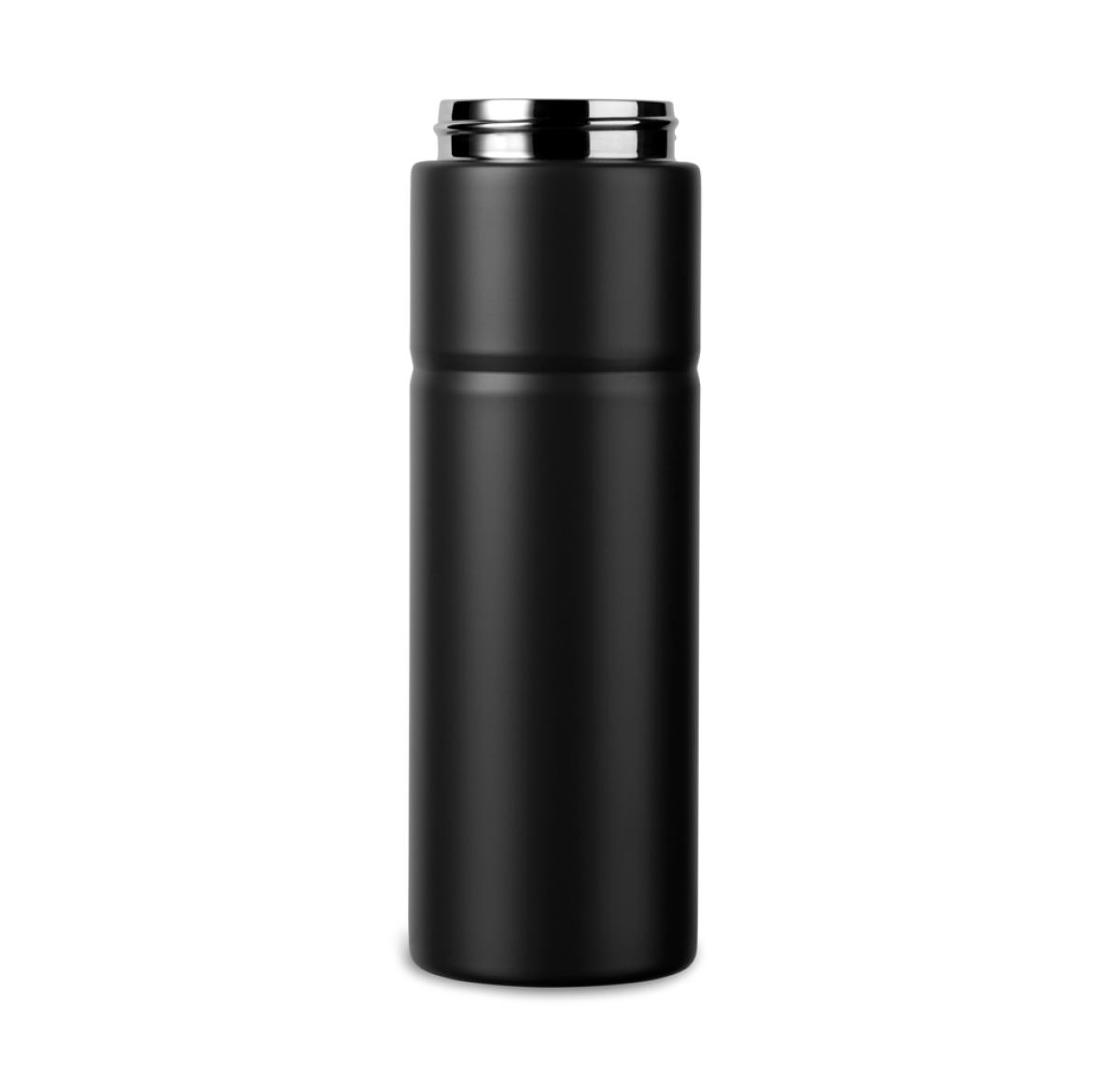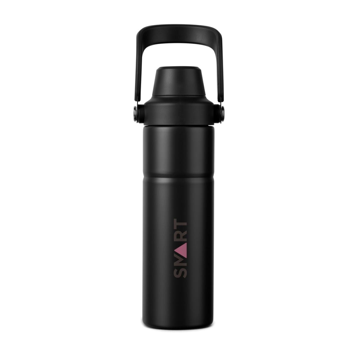 A modern and durable double wall vacuum bottle crafted from recycled stainless steel. Perfectly designed for functionality with its convenient handle, this bottle is ideal for adventures. The lid features two openings: a sip-friendly top for easy access and a larger opening for effortless refills and easy cleaning. The double walled insulation keeps your drink cold for up to 12 hours and hot for up to 4 hours, ensuring you stay refreshed throughout your journey. Not dishwasher or microwave safe, only handwash. Certified by RCS (Recycled Claim Standard), RCS certification guarantees that the entire supply chain of recycled materials is certified. The total recycled content is based on the overall product weight. This product contains 65% RCS certified recycled stainless steel.