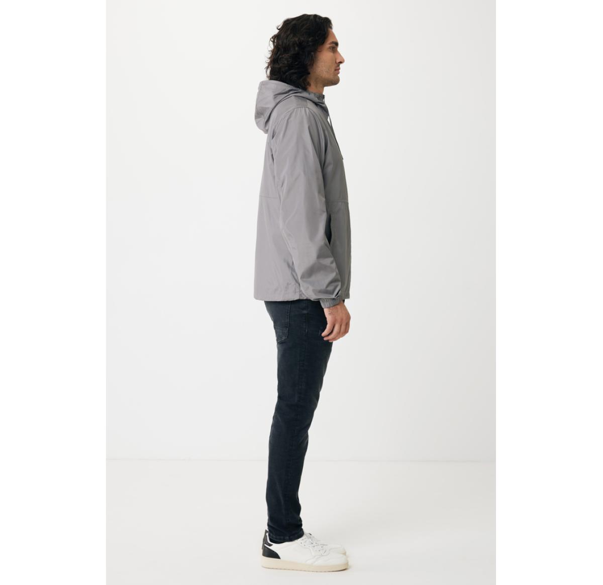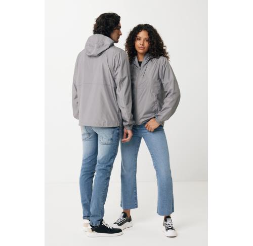 Unisex medium fit lightweight jacket made from 100% post-consumer recycled polyester in 70 G/M². The jacket has an adjustable hood with elastic string, a reversed zipper at the front and seam welt pockets. All zippers have extra zip pullers in matching colour for a refined look. The cuffs are fully elasticated. The back of the jacket is slightly longer and curved and the bottom hem has an elastic string and stoppers for better protection. Fluorine/PFAS free water repellent impregnation. The use of genuine recycled fabric materials and environmental impact claims are guaranteed, by using the AWARE™ disruptive physical tracer and blockchain technology. By scanning the QR code, you will gain access to a dedicated digital passport. 2% of proceeds of each sold product will be donated to Water.org. This product is OEKO-TEX® STANDARD 100 certified.
