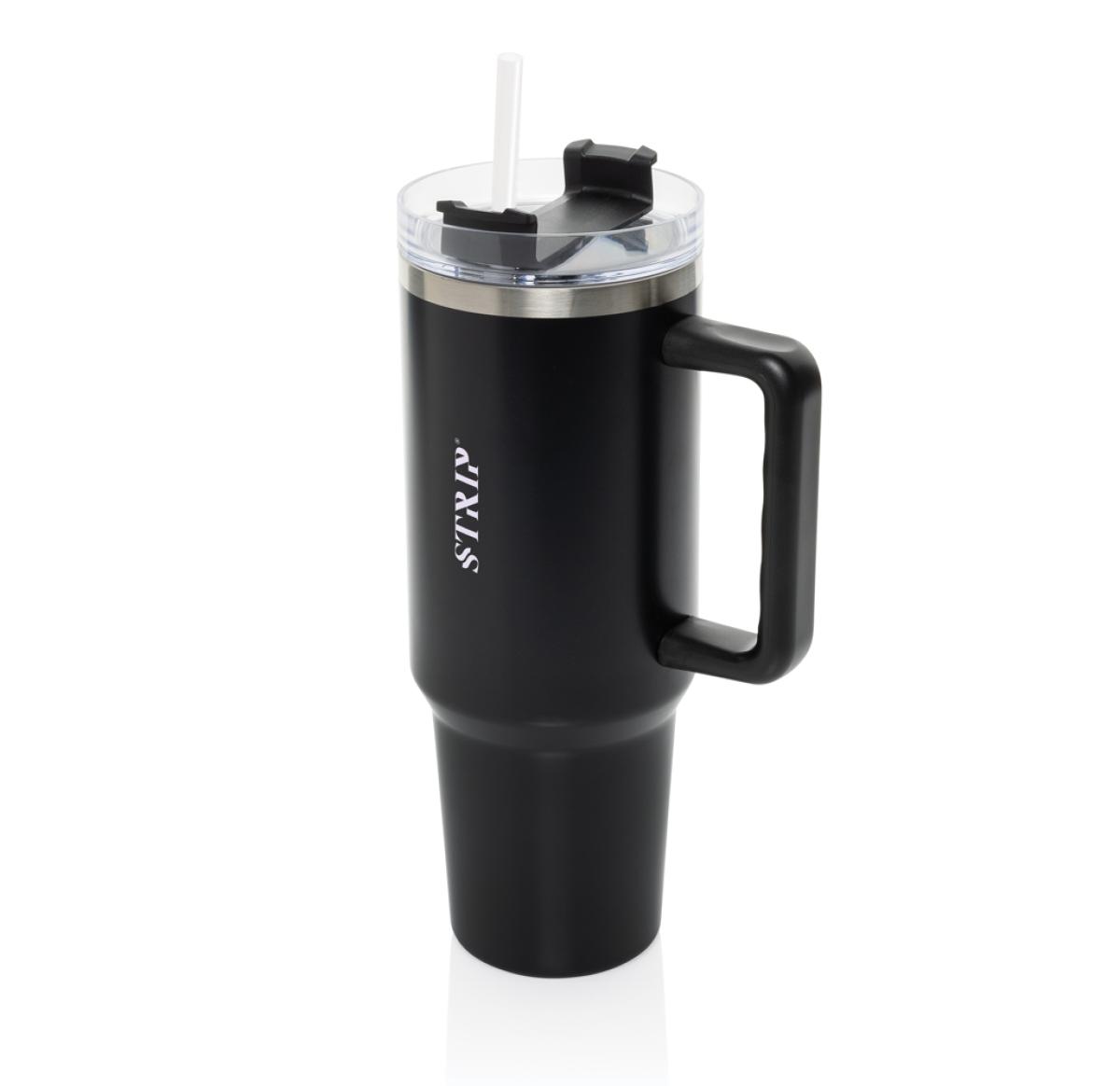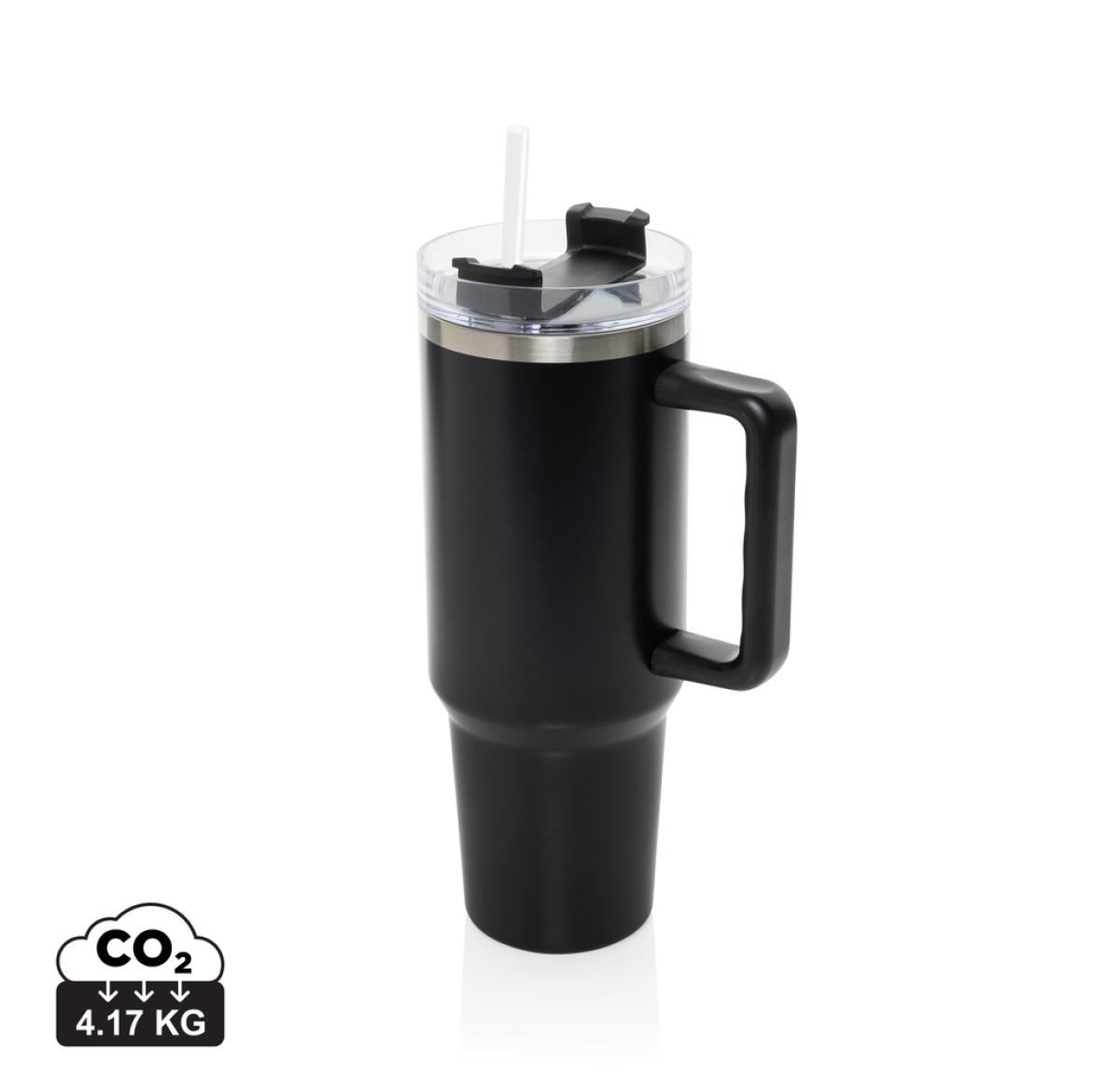 Meet Peakflow, the ultimate 1200ml tumbler designed for those who need a little extra. Its comfort-grip handle and slim base make it easy to carry and fit into most cup holders, keeping you hydrated on the go. Outside made from durable recycled stainless steel, Peakflow’s double-walled, vacuum-insulated body keeps drinks at the perfect temperature. It features a spill-proof lid with a dual function for sipping or using the included recycled steel straw. RCS-certified, with 29% recycled content, and BPA-free. Perfectly practical and lower impact, we recommend handwashing. Bulk packed.