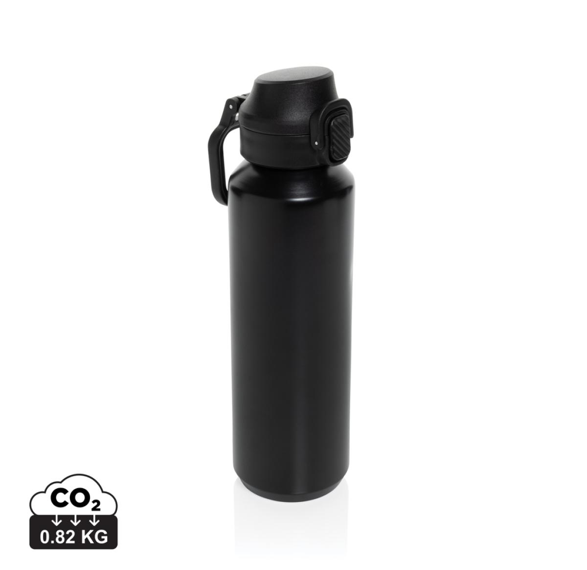 The Via RCS bottle is made from certified recycled 304 steel. This waterbottle features single-wall construction with a unique screw-on and lockable leak-resistant lid. Single hand operation. Press to open the lid for easy sip. Can be used for cold drinks only. Hand wash only. Made with RCS (Recycled Claim Standard) certified recycled materials. RCS certification ensures a completely certified supply chain of the recycled materials. Total recycled content: 73% based on total item weight. BPA free. Bulk packed. 600 ml. capacity