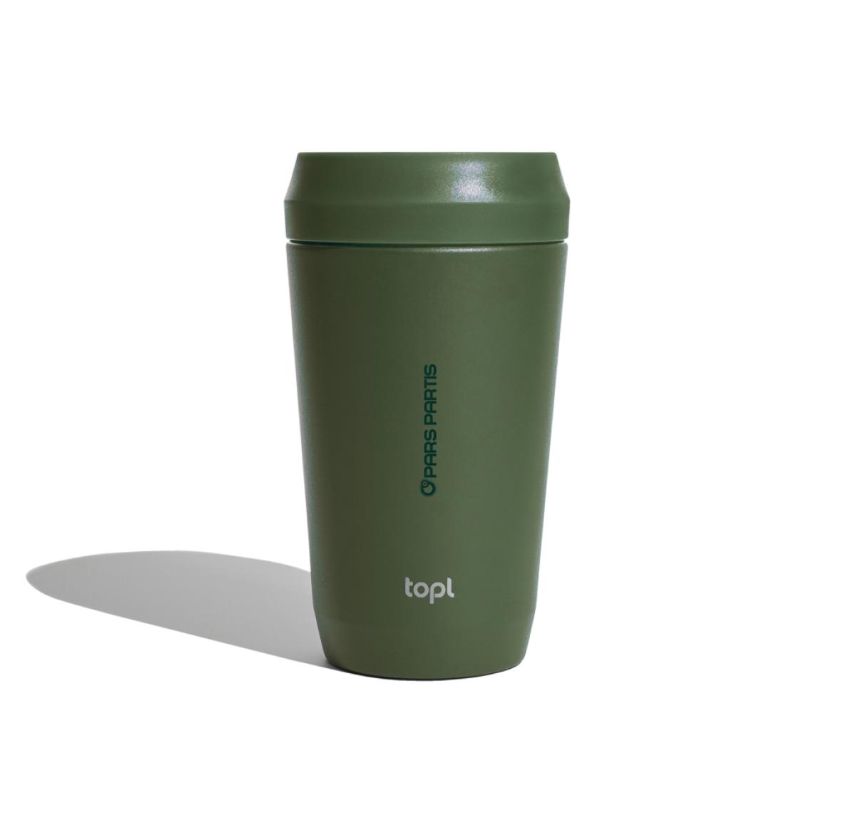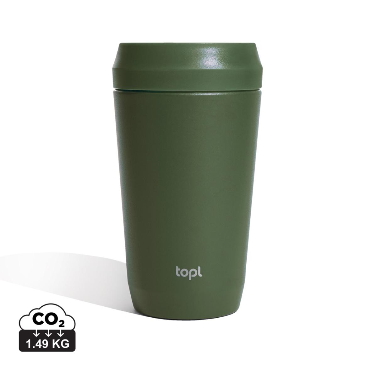 Meet the Topl Cup, your perfect fit for barista size 12oz (354ml) for your favorite tall brew. Made with RCS certified recycled materials and vacuum insulated, it keeps drinks at the perfect temperature. Its patented 360° sip design and transparent lid offer practicality and style for your daily adventures, whether you’re strolling the park or commuting to work. Made with 64% recycled material