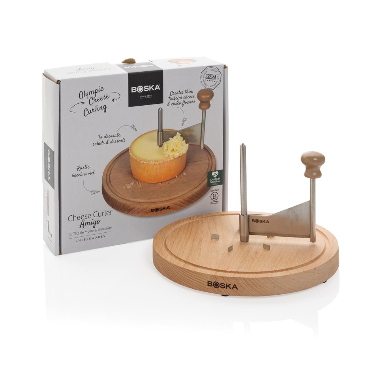 Cheese curls are the perfect finishing touch for your dishes. They’re delicious on an Italian pasta or a fresh salad and always a hit during happy hour. It’s a fun and tasty way to enjoy your favorite cheeses. The Cheese Curler Amigo from BOSKA – a B Corporation certified company – features a stainless steel blade and is perfect for Tête de Moine and even chocolate. With five short pins around the board, you’ll have an extra firm grip on the cheese. Try it for yourself; curls have never looked better! The cheese curler is suitable for hand washing only and comes with a 10-year guarantee.