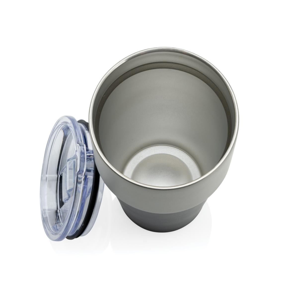 This 500ml tumbler features a distinctive double-coloured exterior with a stylish half-and-half design. The double-wall recycled stainless steel vacuum construction keeps beverages chilled for up to 15 hours or warm for up to 5 hours. The Fluid Tumbler fits most standard car cup holders, making it perfect for on-the-go use. Made with RCS (Recycled Claim Standard) certified recycled materials, ensuring a completely certified supply chain of the recycled materials. Spill proof & BPA free. Includes FSC®certified kraft tube gift packaging. Total recycled content: 81% based on total item weight.